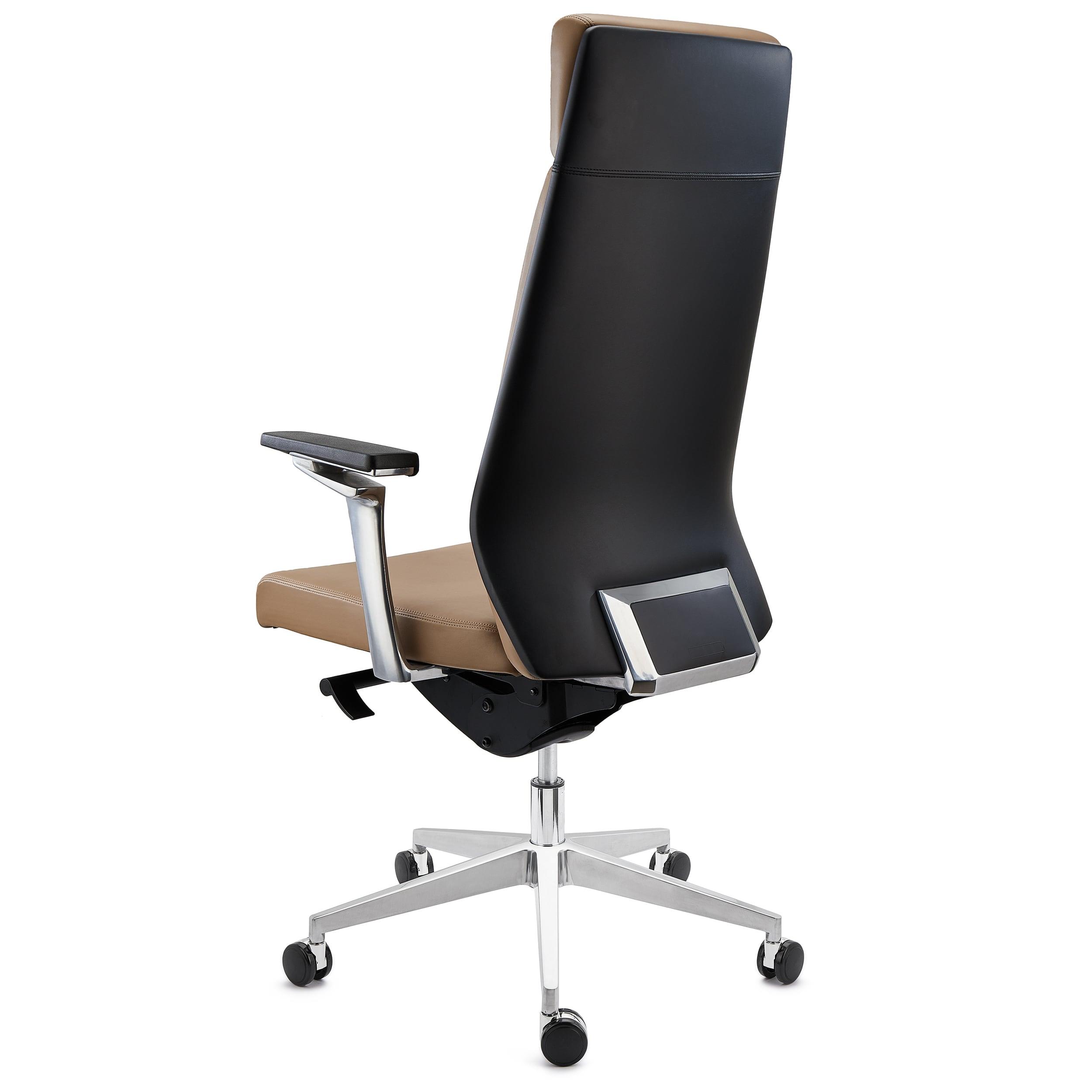• Asiento y reposacabezas en cuero, respaldo sintético