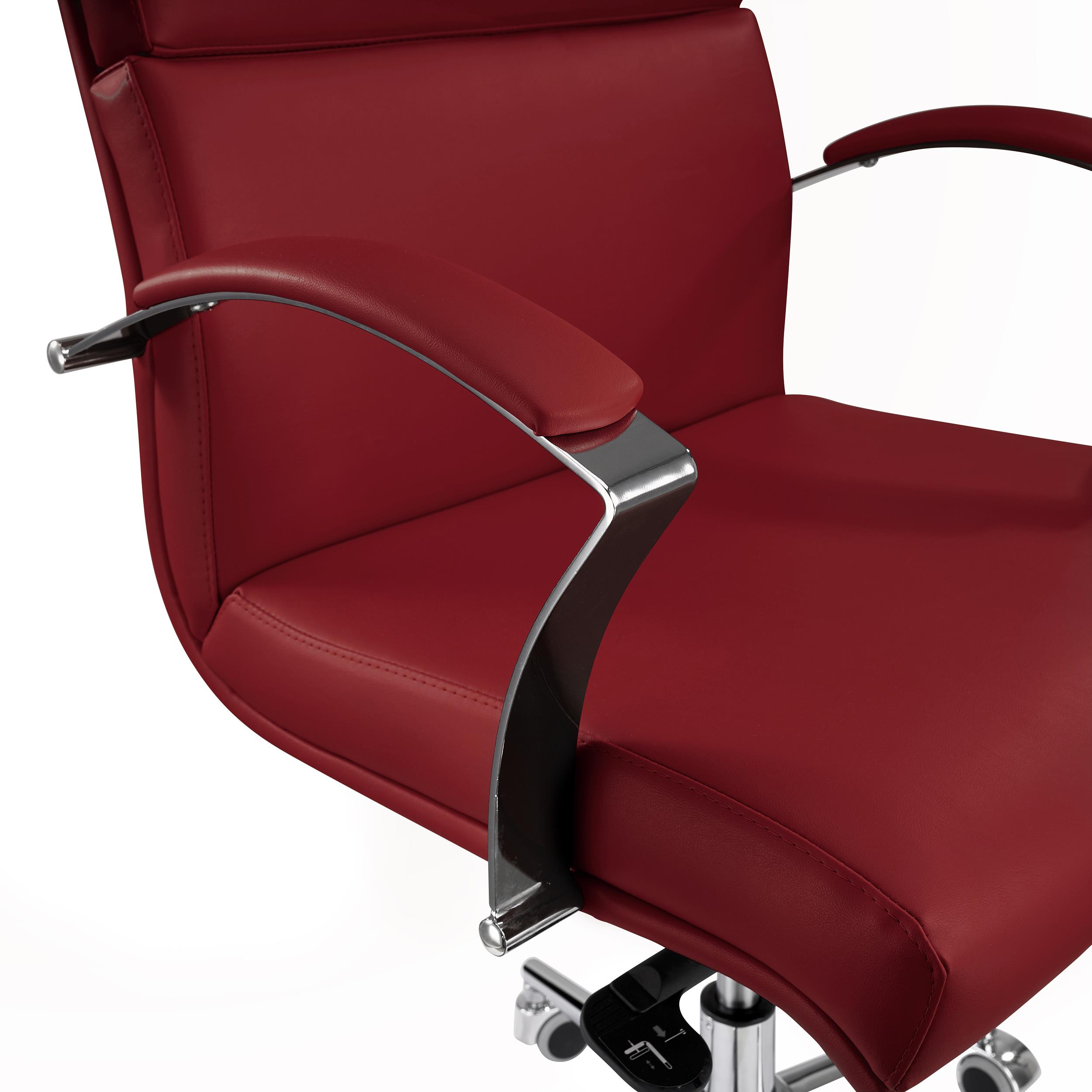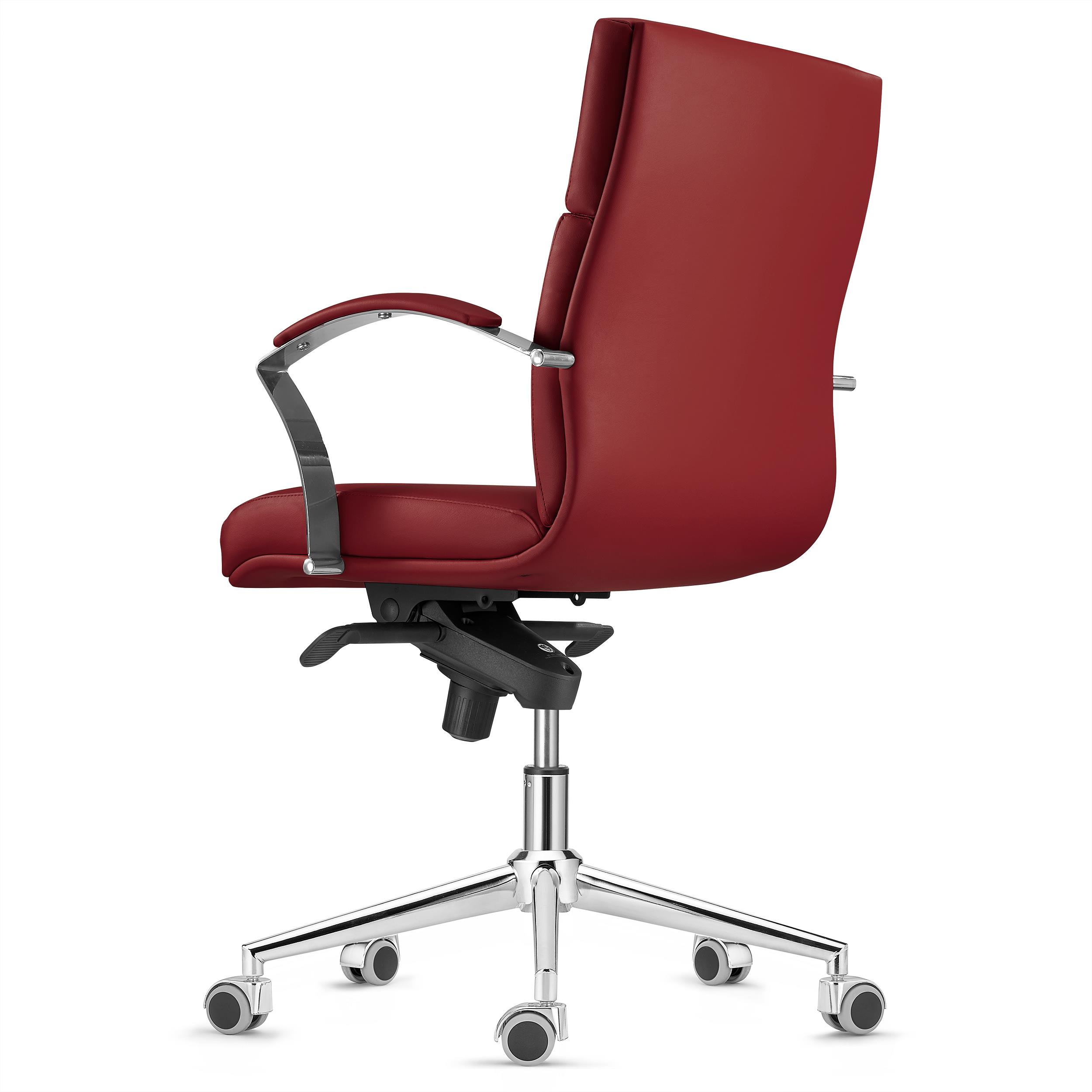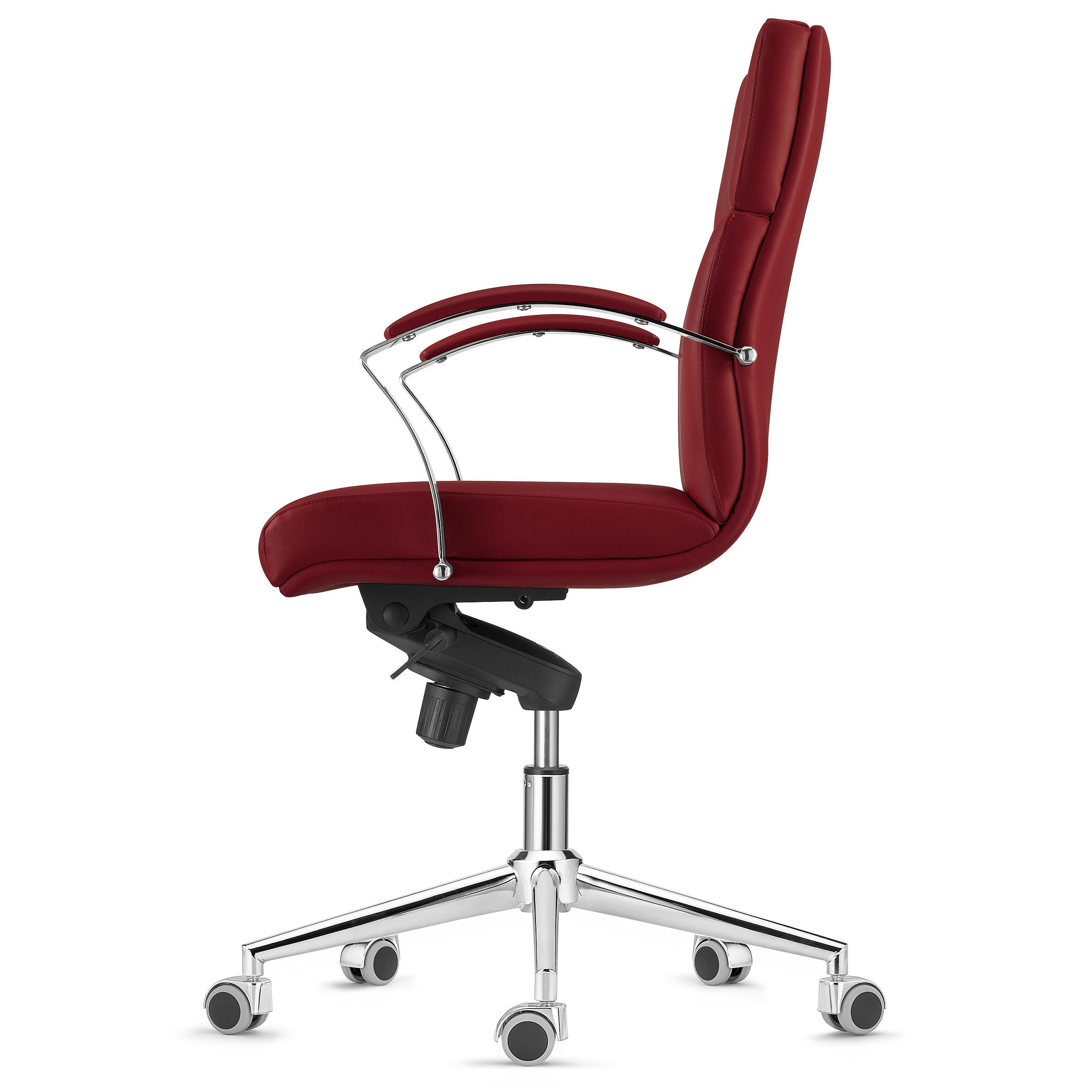 DEMO# Sillón de Oficina RABAT, Respaldo Medio, en Piel Natural color Burdeos, Basculante