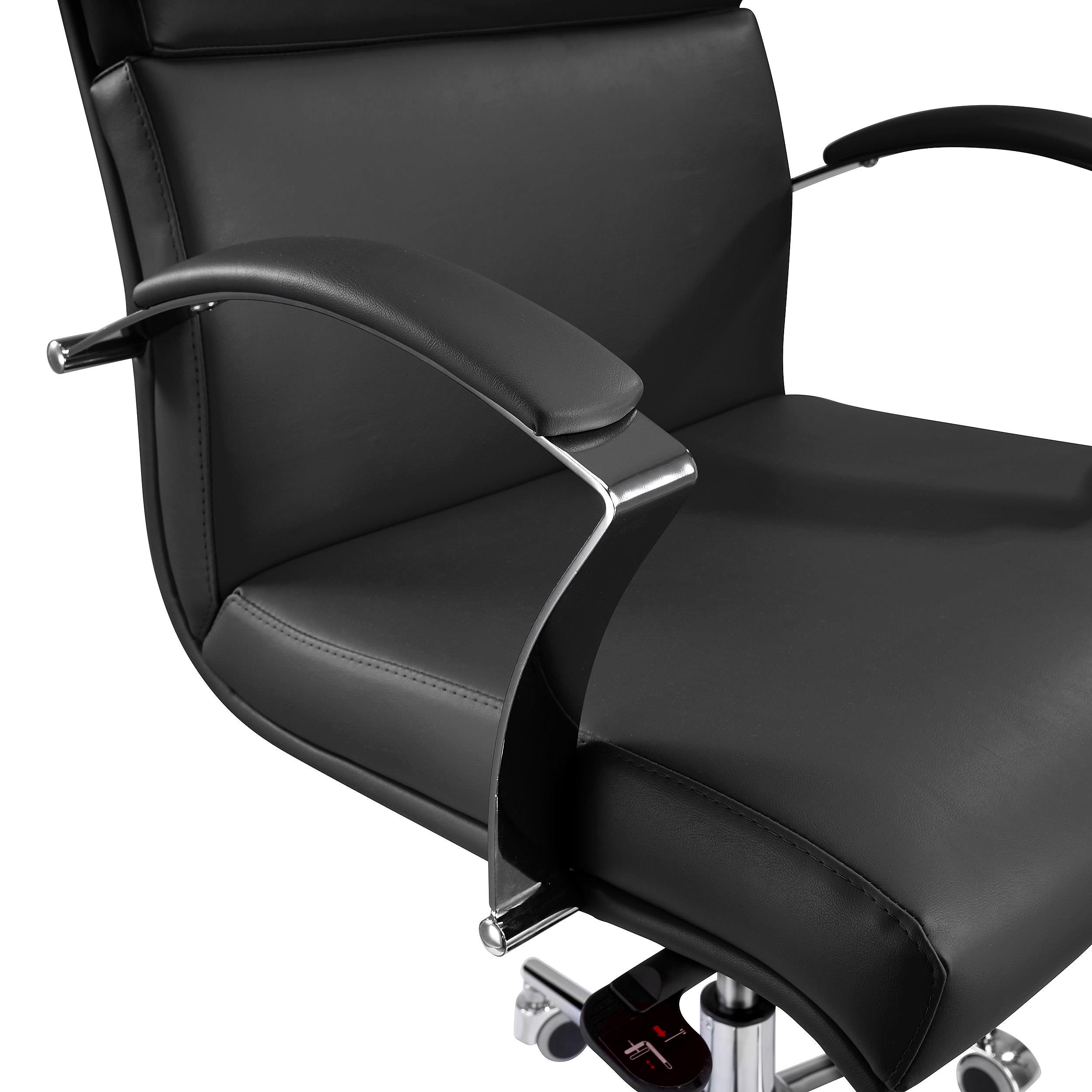 DEMO# Sillón de Oficina RABAT, Respaldo Medio, en Piel Natural color Negro, Basculante