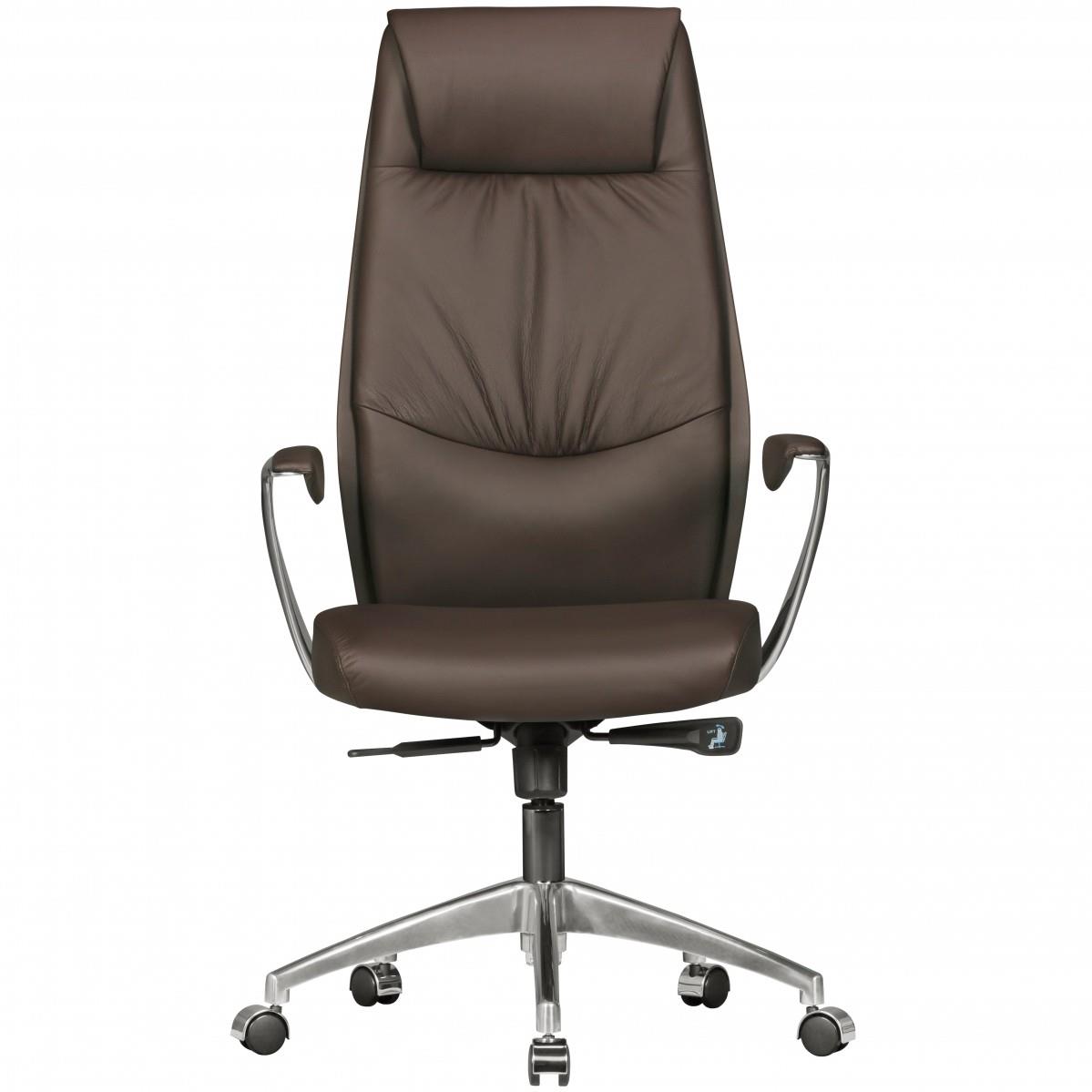 DEMO# Sillón de Oficina SAJONIA, Elegante Diseño, Grueso Acolchado, en Piel Natural color Marrón