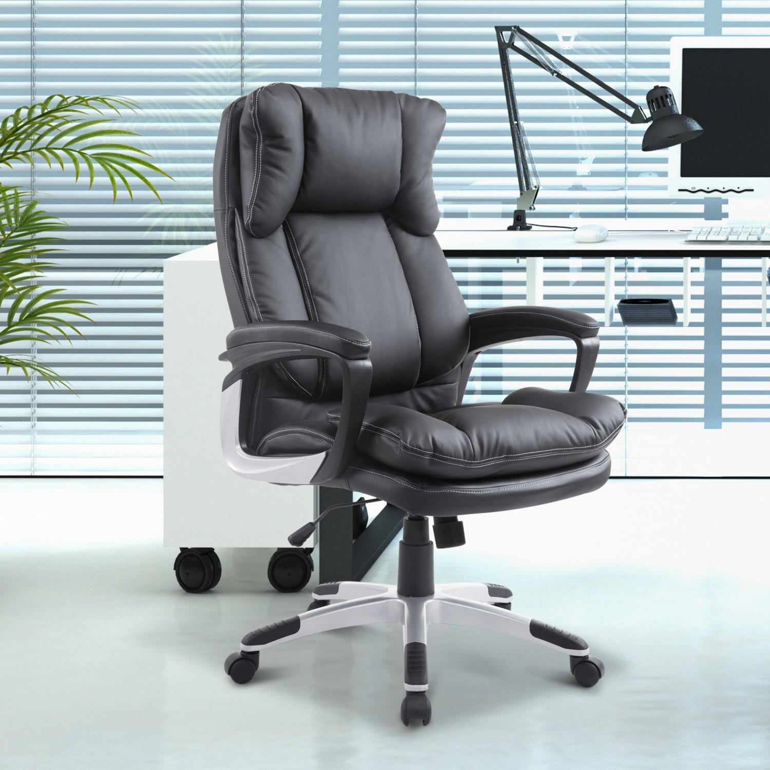 DEMO# Sillón de Oficina SURIMI, Muy Confortable, Doble Acolchado, en Piel color Negro