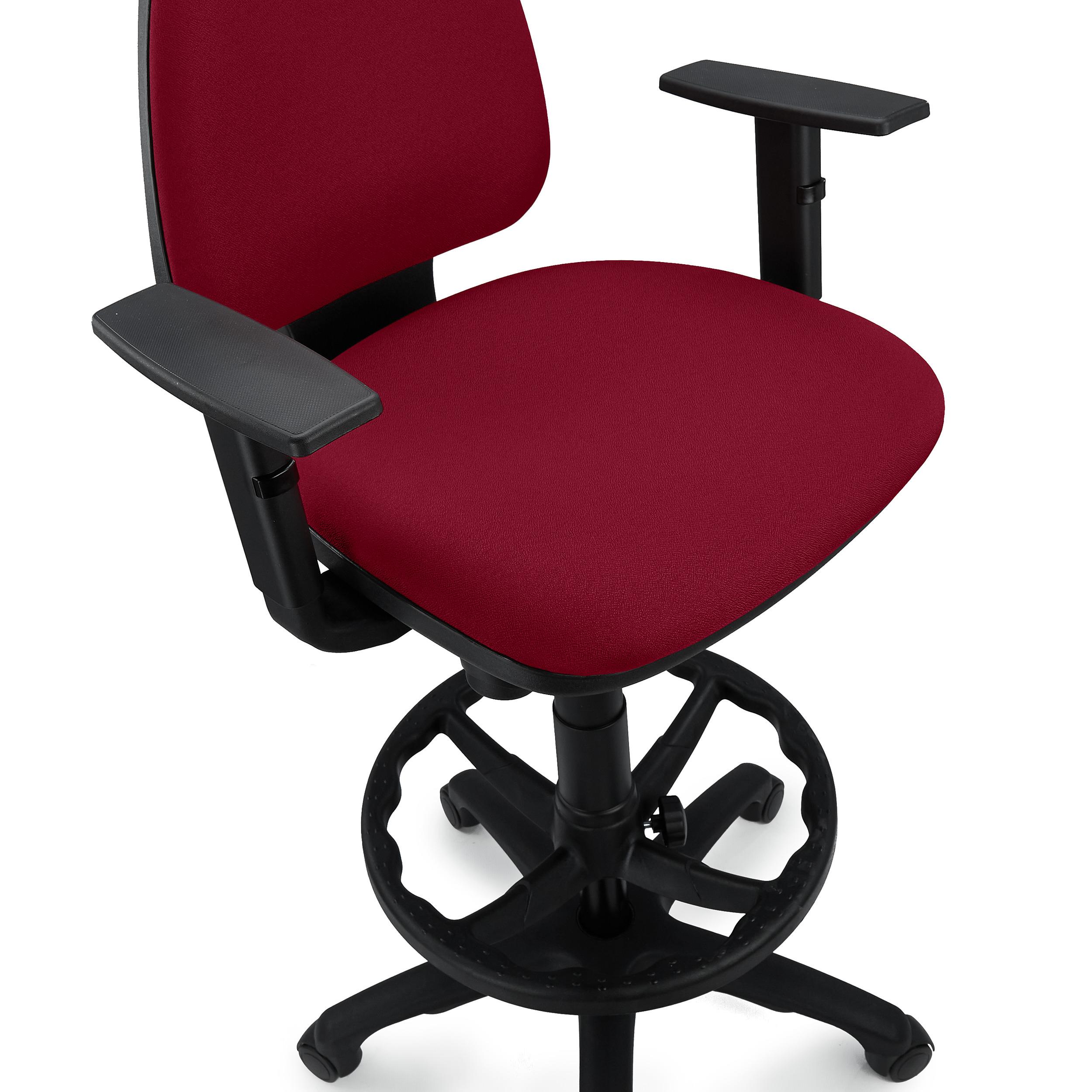 Para su fabricación, se han seleccionado cuidadosamente materiales de primera calidad. Esta versión está tapizada en tela de calidad, un material 100% poliéster resistente e ignífugo disponible en varios colores, y que garantiza una fácil limpieza y durabilidad. Su robusta base en plástico resistente, con reposapiés integrado ofrece una estabilidad absoluta.