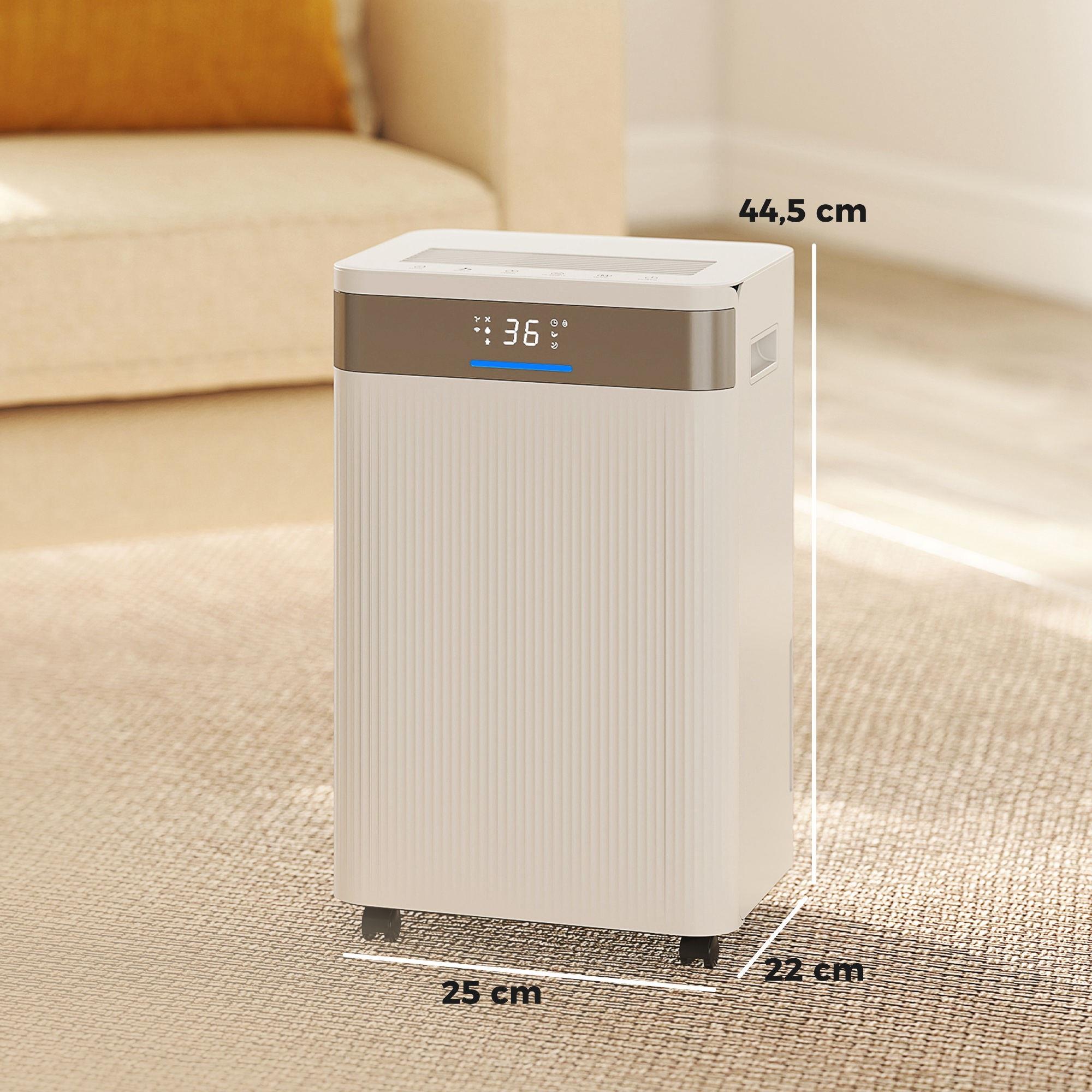 Este deshumidificador es adecuado para una superficie de hasta 25 m², cuenta con un depósito de 2 litros y elimina hasta 12 litros de agua al día. Está equipado con un filtro extraíble por lo que también ayuda a secar la ropa.