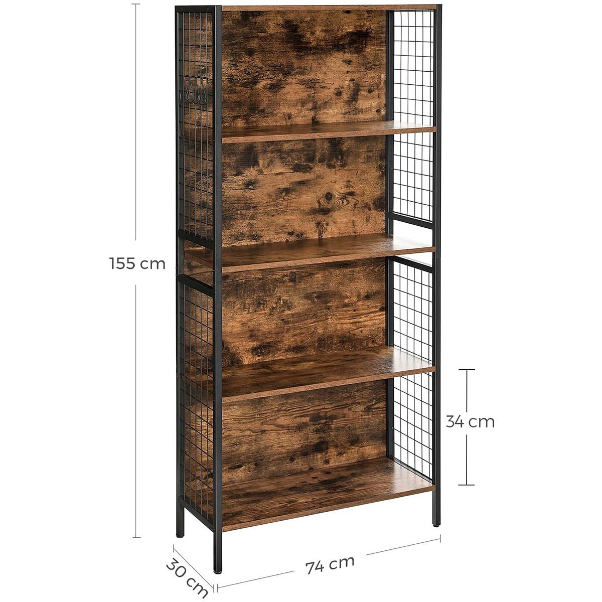 Esta es una librería ideal para cualquier espacio cuyo diseño inspirado en el estilo industrial presenta unas elegantes líneas color negro que, combinado con el acabado marrón rústico, hacen que sea un mueble realmente atractivo. Tiene unas dimensiones de 74x30x155 cm y cuenta con 4 estantes que ofrecen gran capacidad de almacenaje en las que se puede albergar objetos de todo tipo, como libros, plantas o cualquier artículo decorativo.