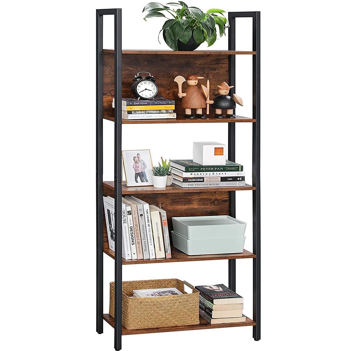 Se trata de una librería muy funcional  y con amplia capcidad para almacenar libros, documentos o para exponer objetos o decoración, quedará perfecta en cualquier espacio. Su diseño inspirado en el estilo industrial es muy elegante y sus líneas de color negro combinadas con el acabado marrón rústico, hacen que sea un mueble realmente atractivo. Tiene unas dimensiones de 62x24x165 cm y cuenta con 5 estantes que ofrecen gran capacidad de almacenaje sin preocuparte por el peso que añadas al mueble, ya que es muy resistente y en cada estante podrás colocar objetos grandes de hasta 20 kg.