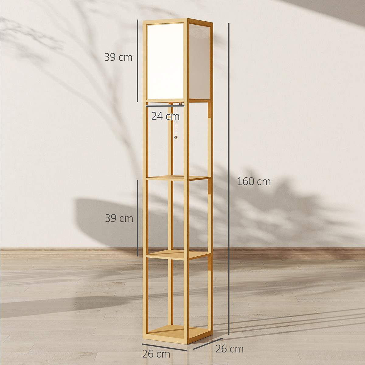 Lámpara de Oficina TALIA, Dimensiones 26x26x160 cm, con Estantes, en Madera color Natural