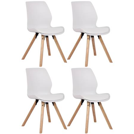 Lote 4 Sillas de Confidente KALI, Estructura de Madera, Asiento Tapizado, en Plástico color Blanco
