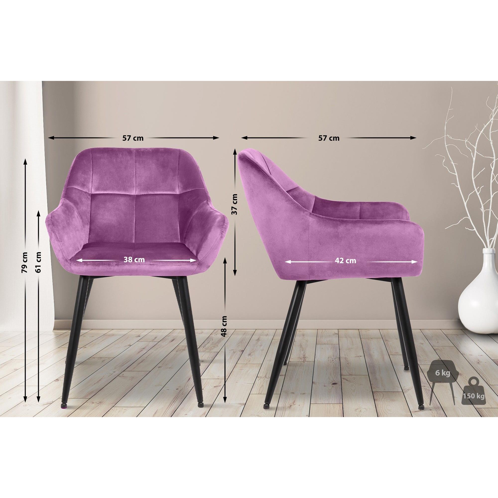 Lote de 2 Sillas de Confidente AMISA, Patas Metálicas, en Terciopelo color Rosa