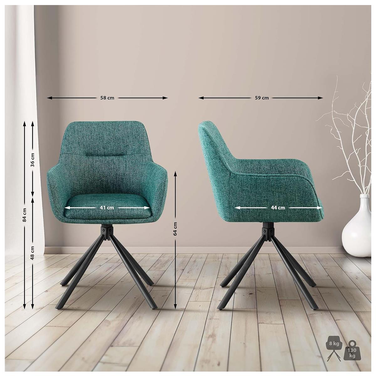 Lote de 2 Sillas de Confidente COREY, Diseño Moderno, Giratorias 180º, en Tela color Verde