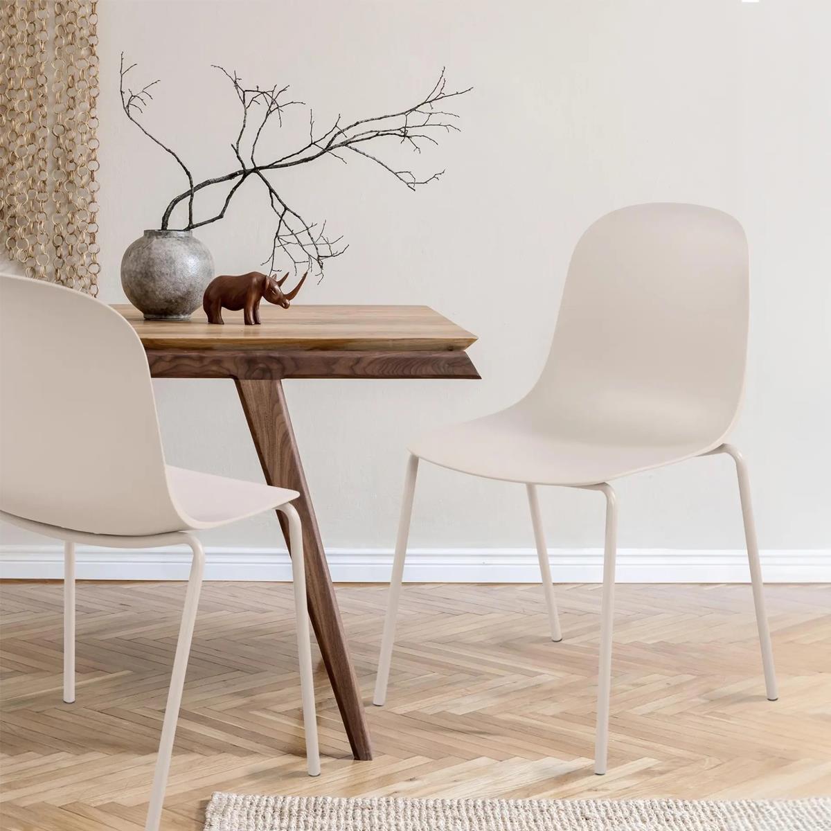Por otro lado, la estructura es de acero con recubrimiento de polvo que sirve para proteger y evitar a oxidación. En todos los colores las patas están hechas del mismo color que la estructura, para conseguir una armonía perfecta. En definitiva, se trata de un modelo muy práctico y polivalente, disponible en una amplia variedad de colores.
