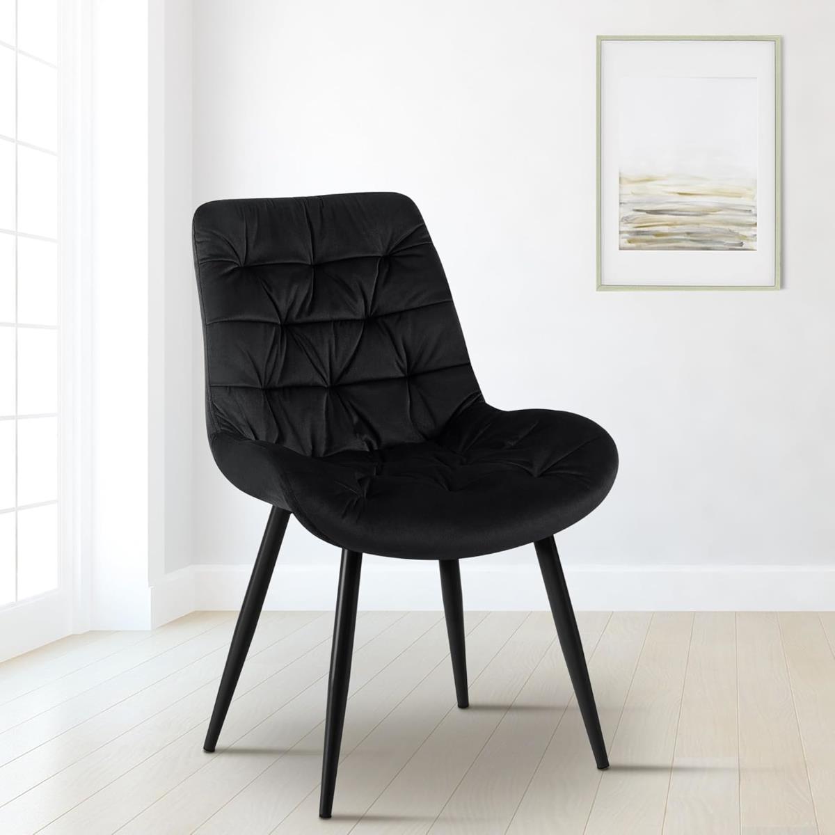 Lote de 2 Sillas de Confidente LENNY, Patas Metálicas Negras, en Terciopelo color Negro