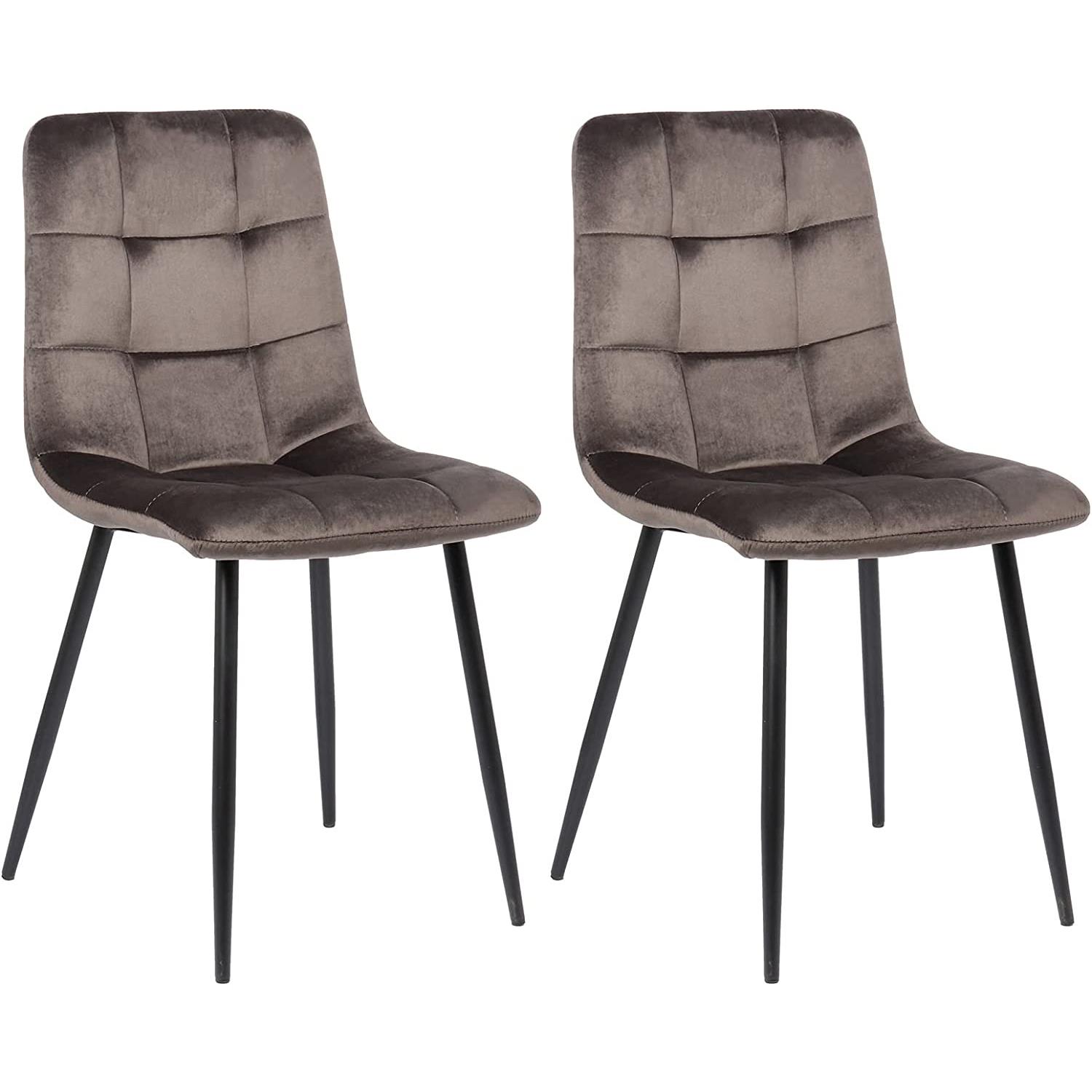 Lote de 2 Sillas de Confidente RIAD, Robusta Estructura Metálica, en Terciopelo color Gris