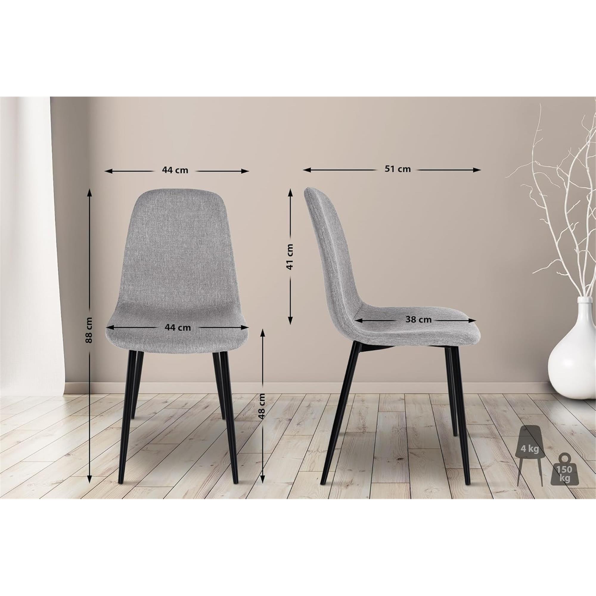 Lote de 4 sillas de Confidente NAIPES, Robusta Estructura Metálica, en Tela color Gris Claro