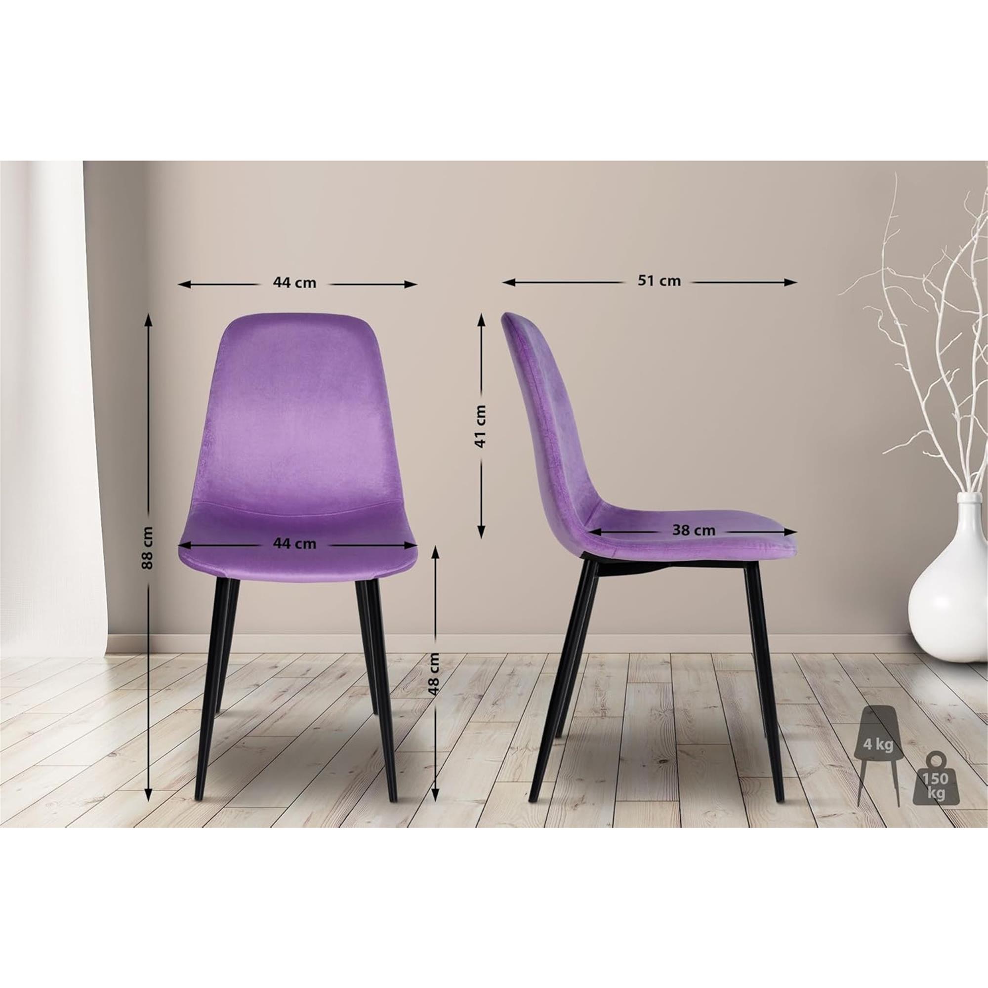 Lote de 4 sillas de Confidente NAIPES, Robusta Estructura Metálica, en Terciopelo color Lila