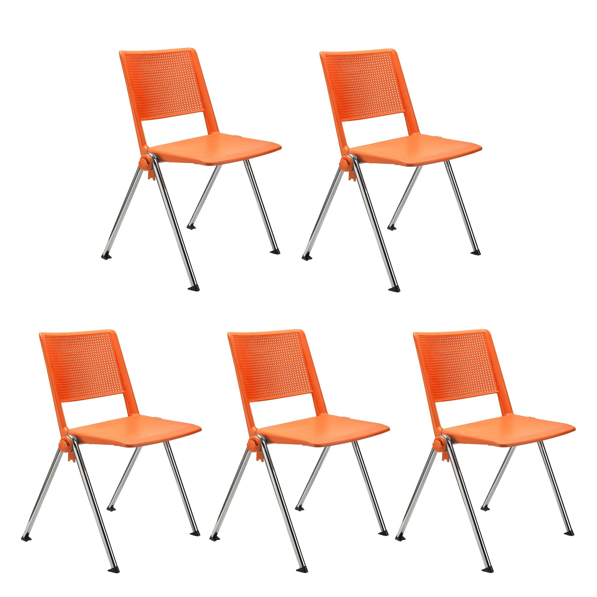 Lote de 5 Sillas de Confidente CARINA, Apilables, Ganchos de Unión, Patas Cromadas, En Naranja