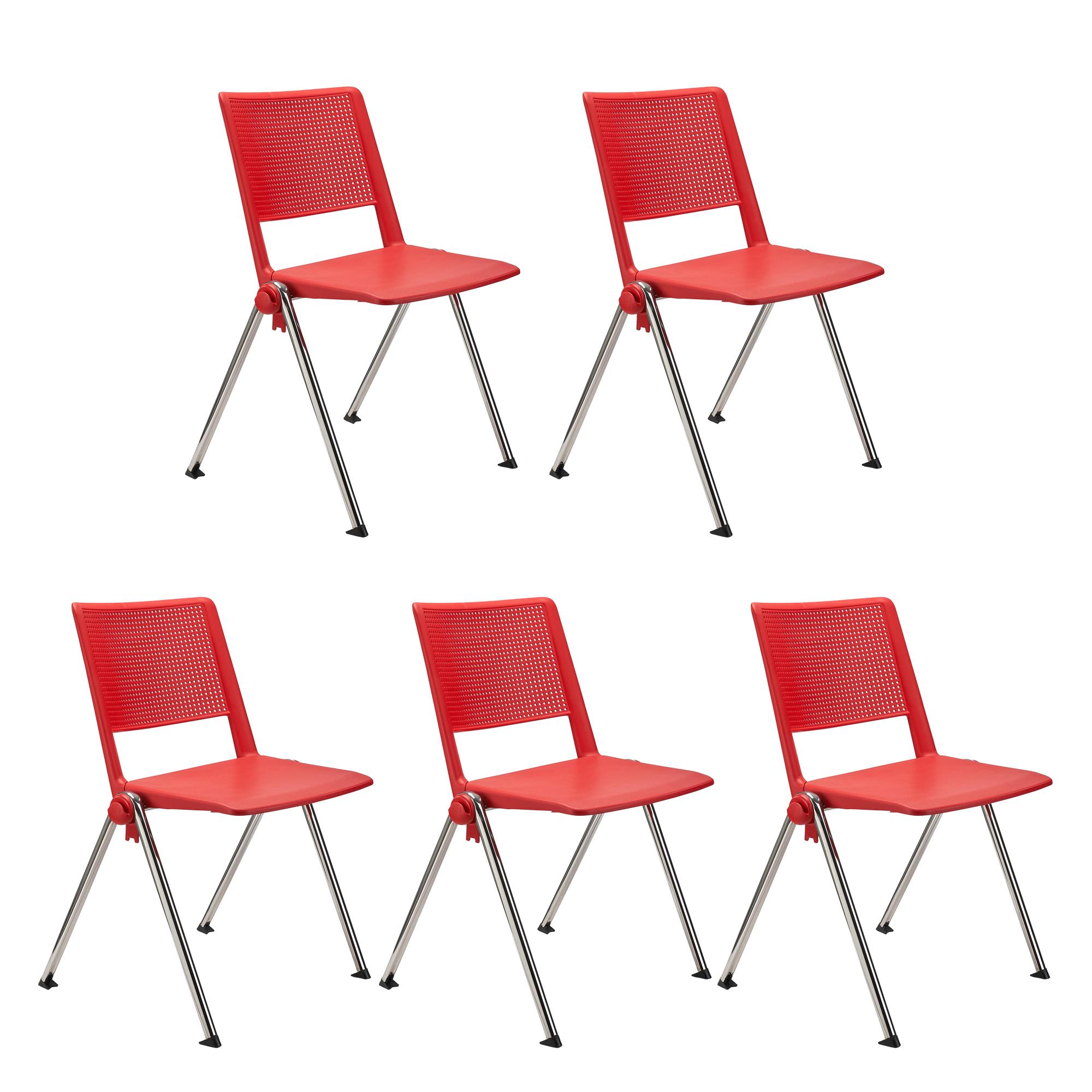 Lote de 5 Sillas de Confidente CARINA, Apilables, Ganchos de Unión, Patas Cromadas, En Rojo