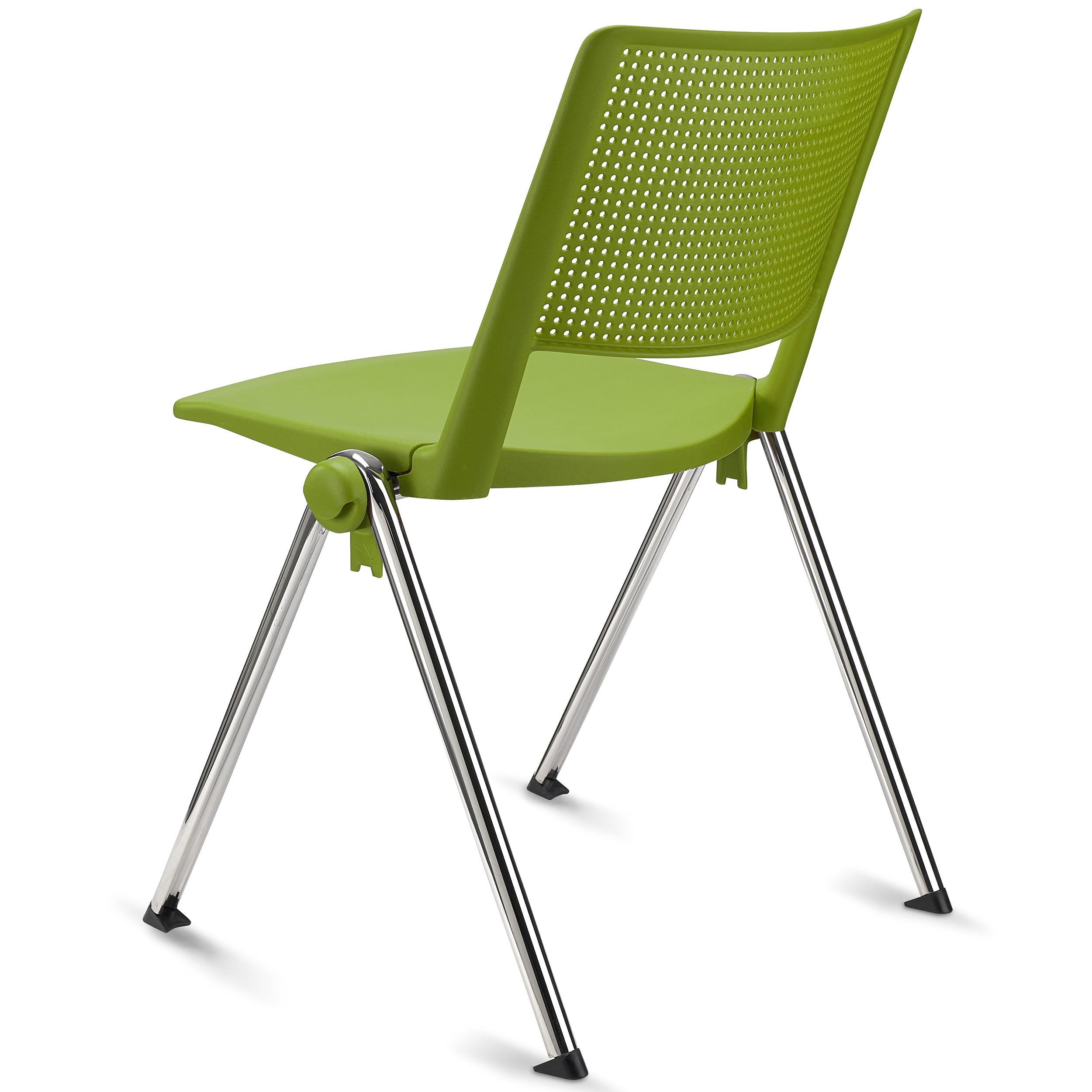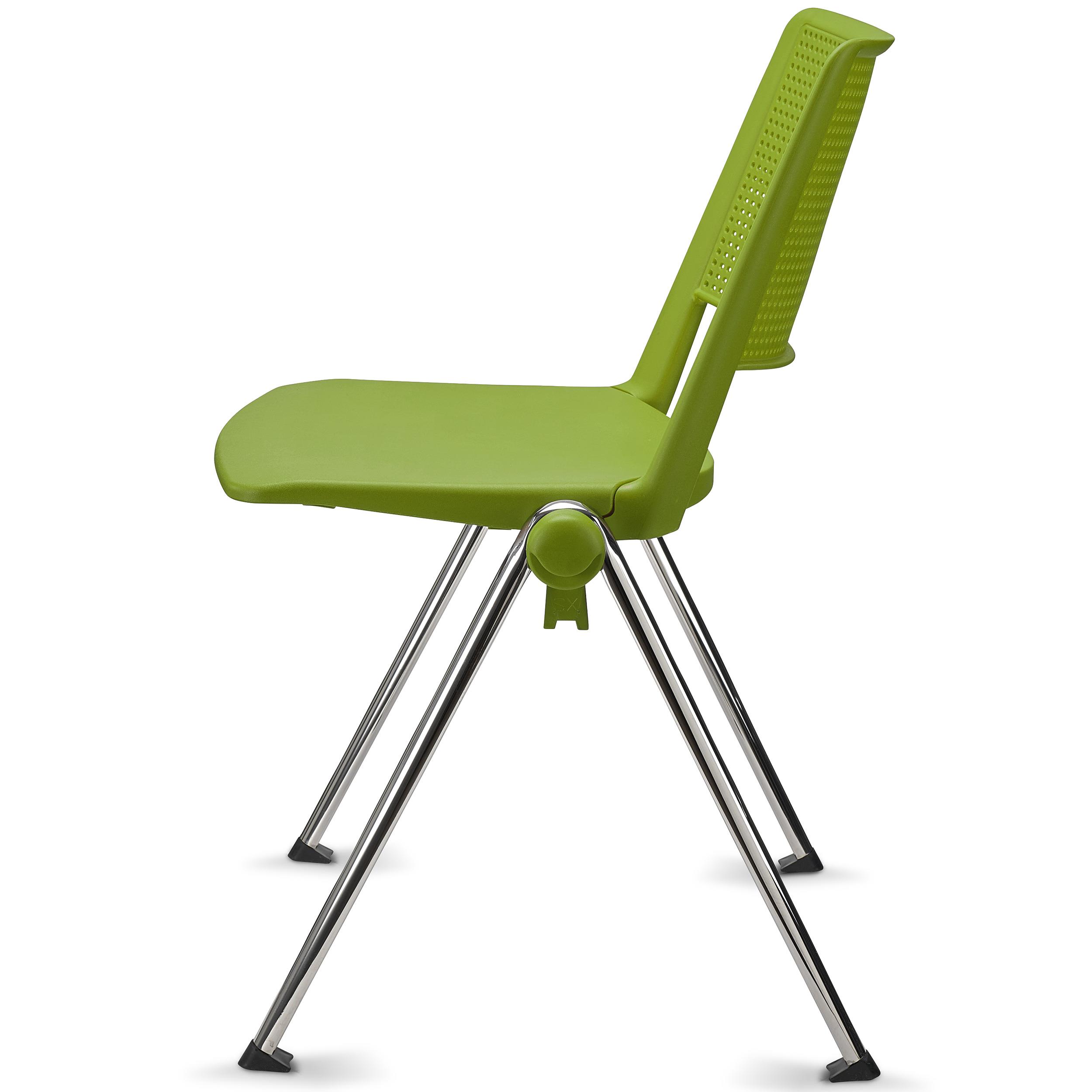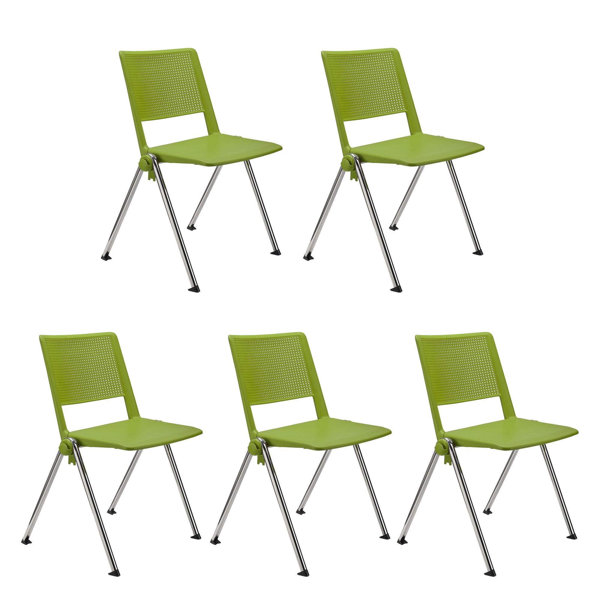 Lote de 5 Sillas de Confidente CARINA, Apilables, Ganchos de Unión, Patas Cromadas, En Verde