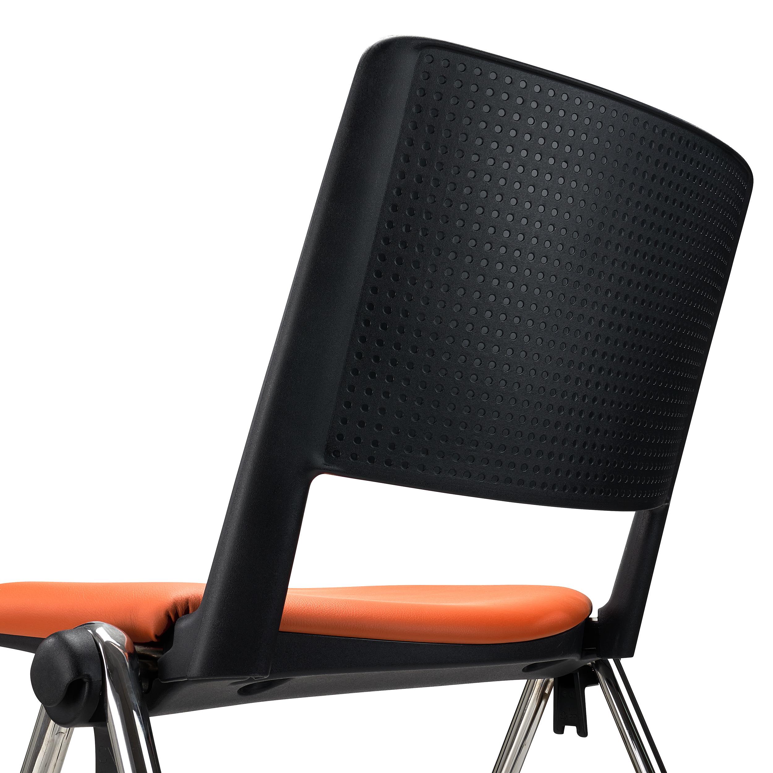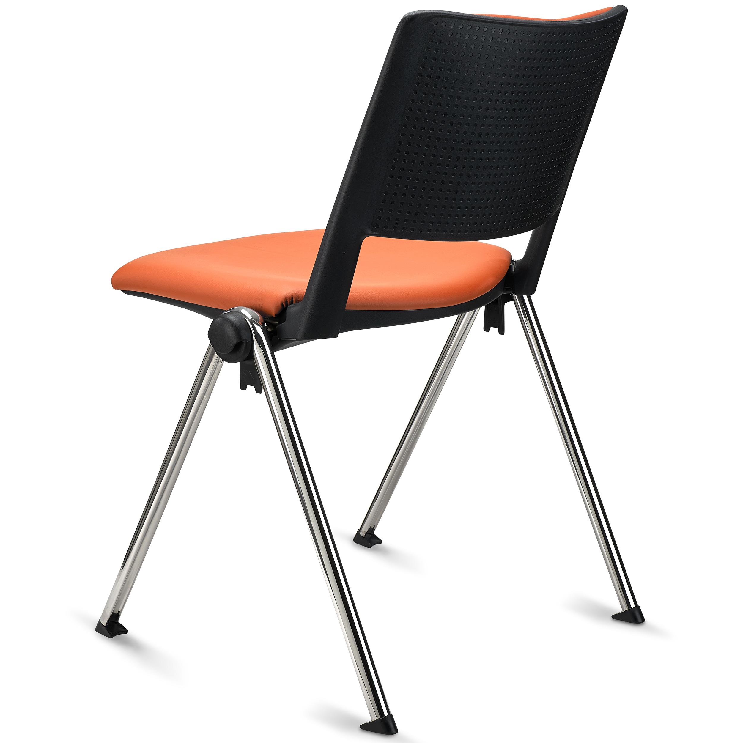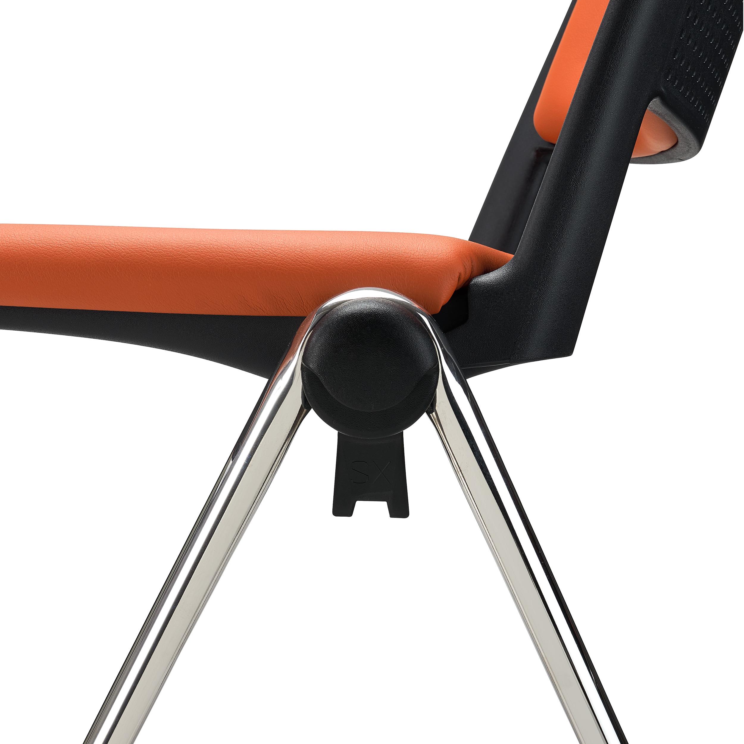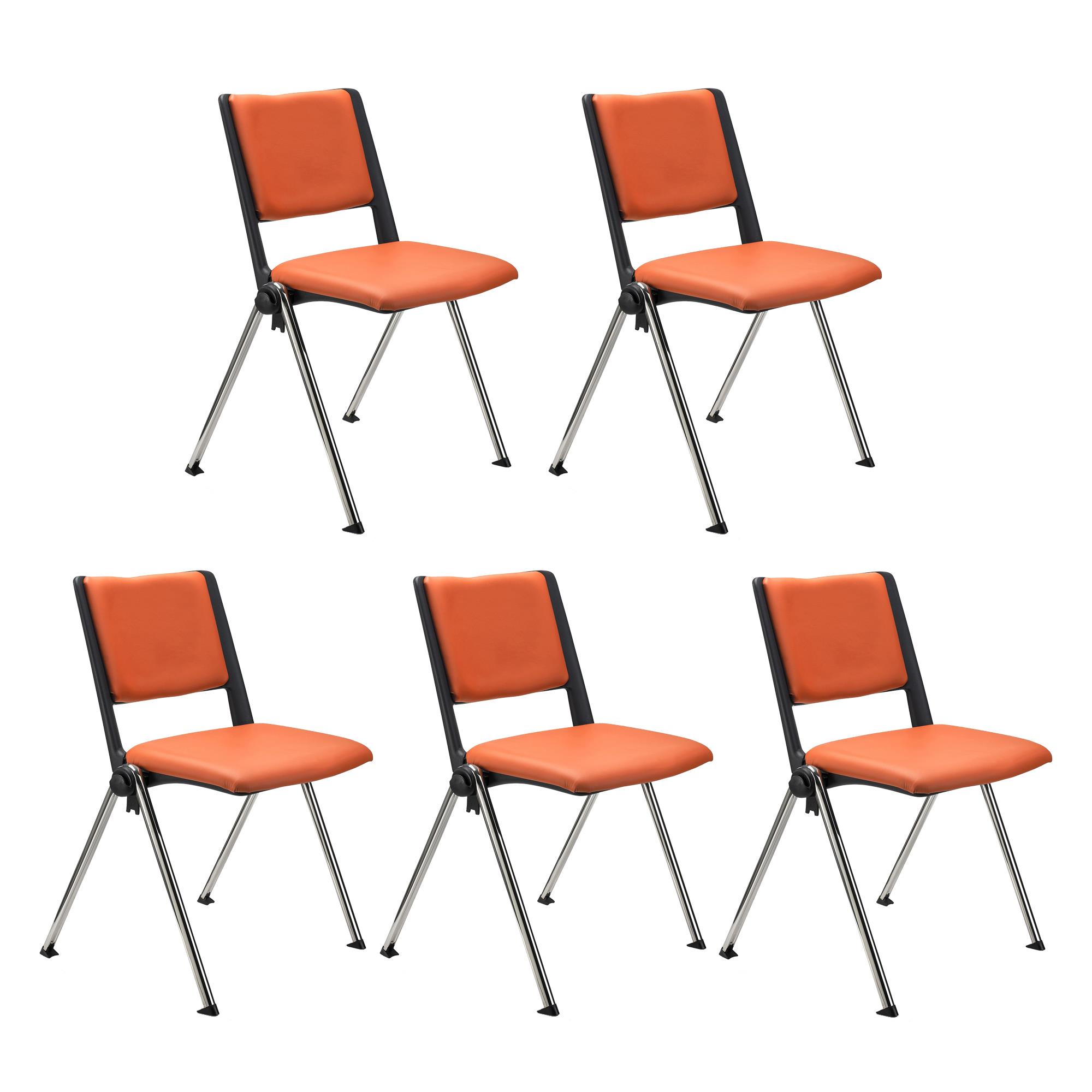 Lote de 5 Sillas de Confidente CARINA, Apilables, Ganchos de Unión, Patas Cromadas y Piel Naranja