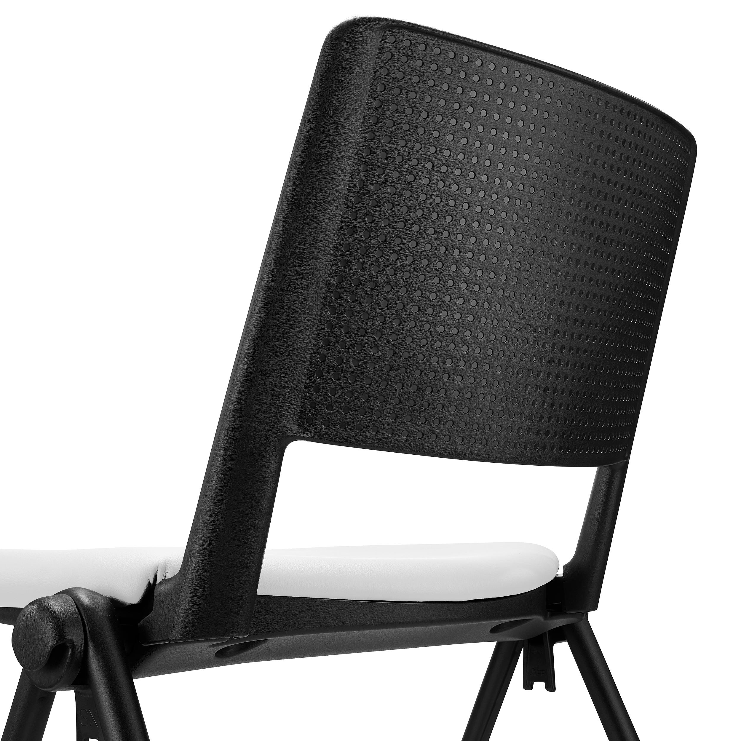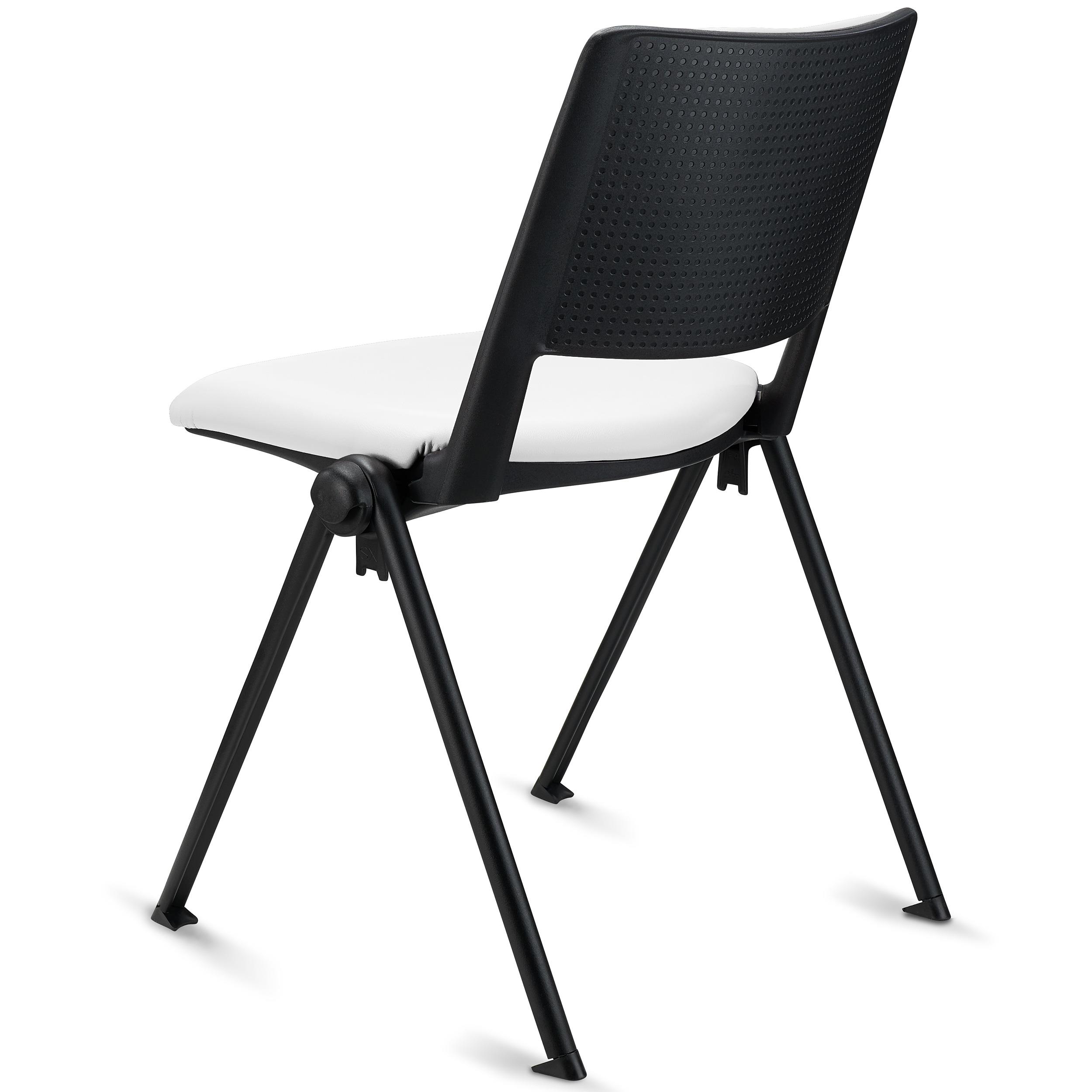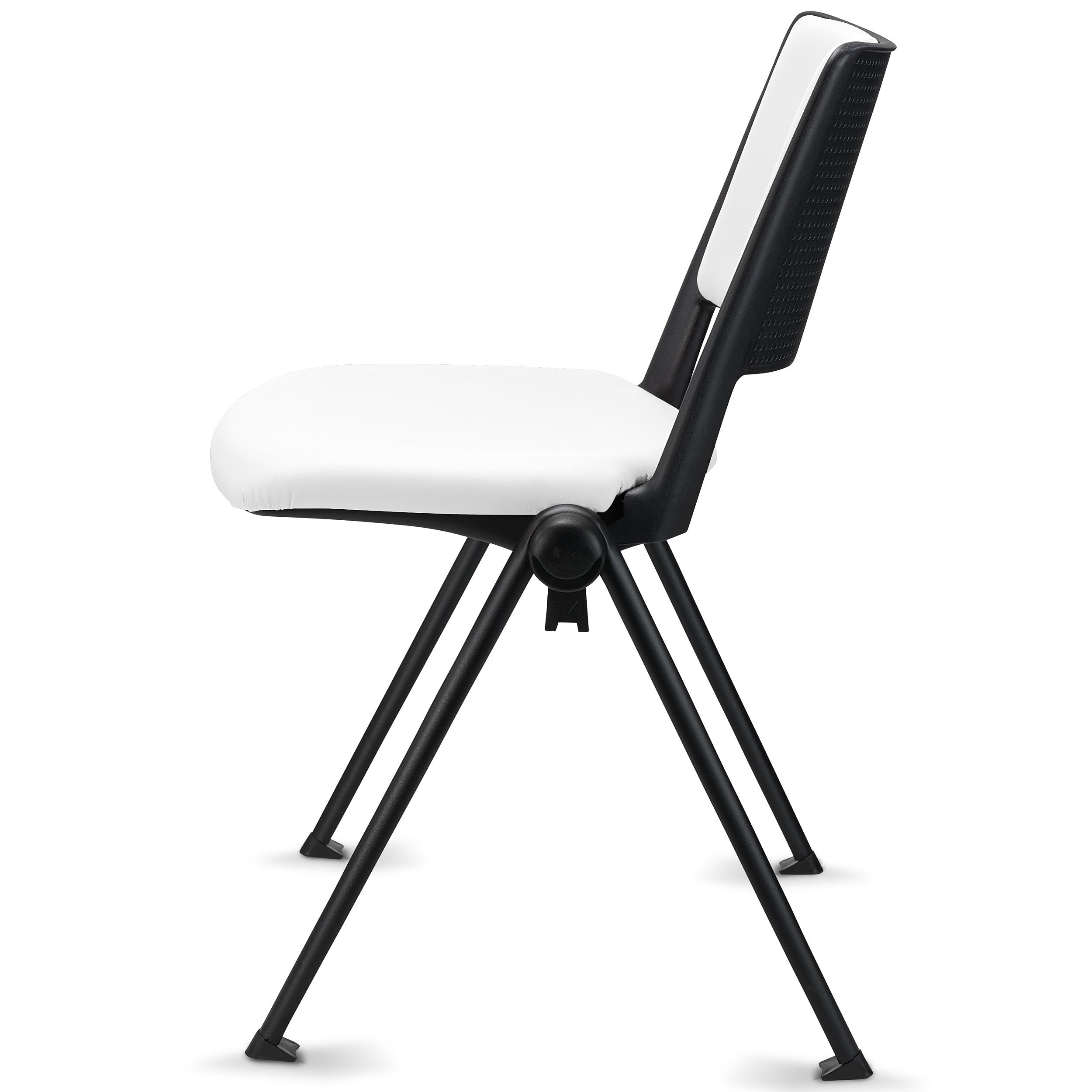 Lote de 5 Sillas de Confidente CARINA, Apilables, Ganchos de Unión, Patas Negras y Piel Blanca