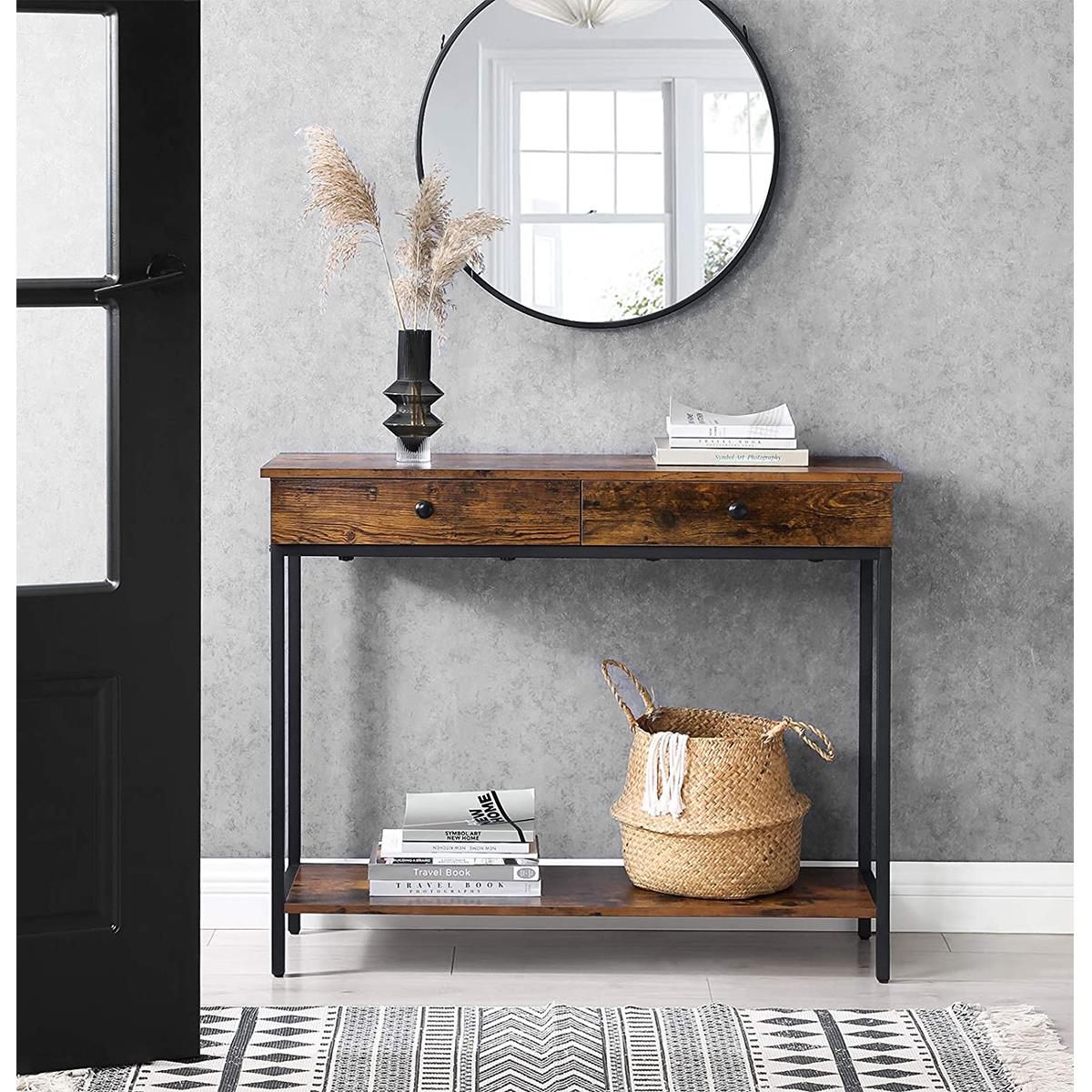 Mesa consola con cajones ELKE, Dimensiones 100x35x80 cm, en Metal y Madera color Marrón Oscuro