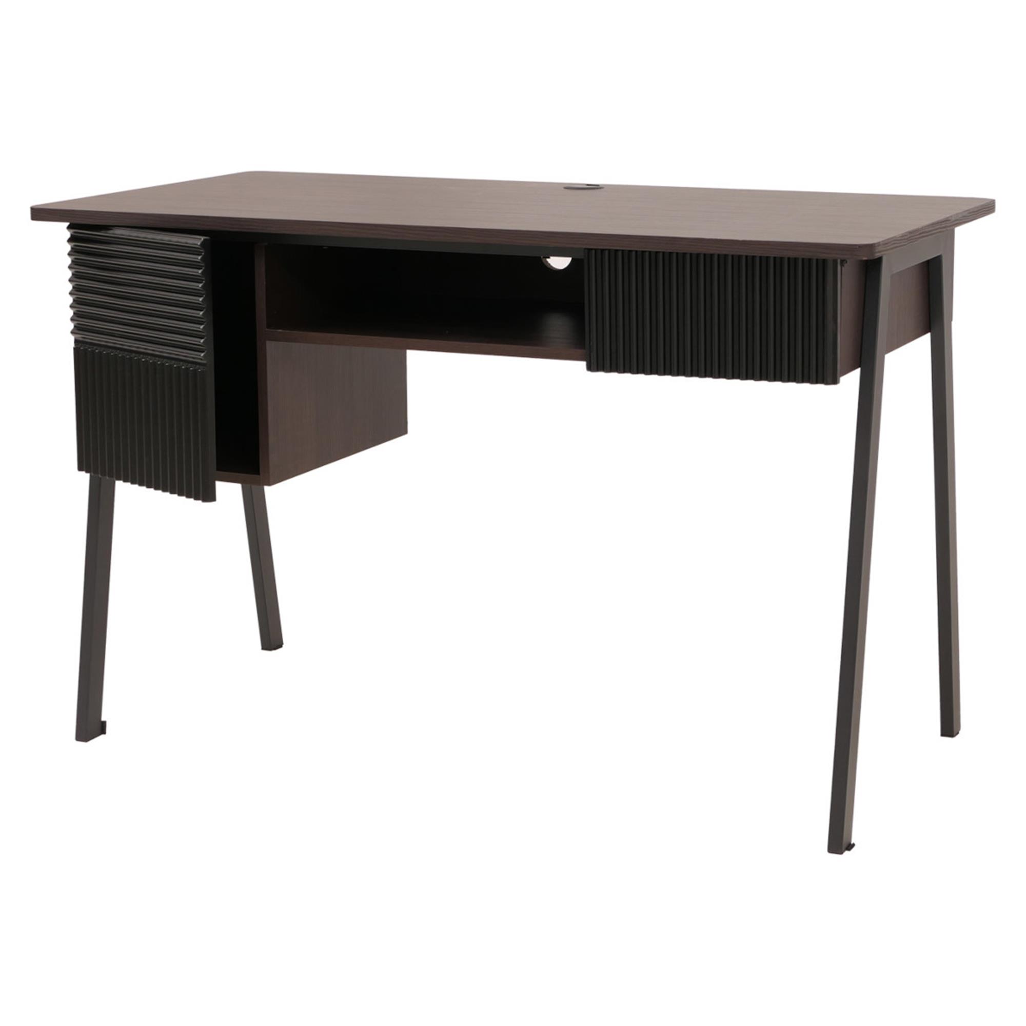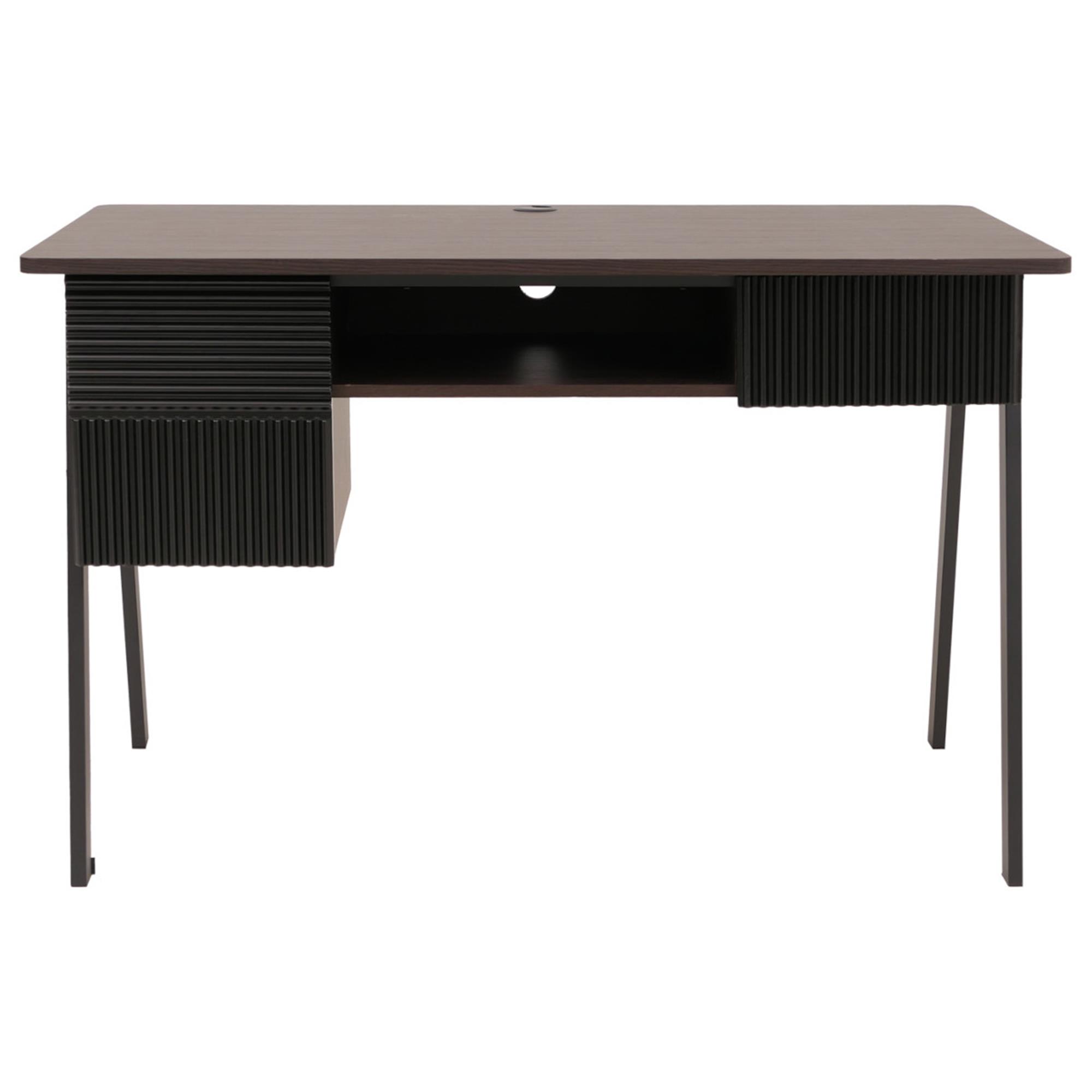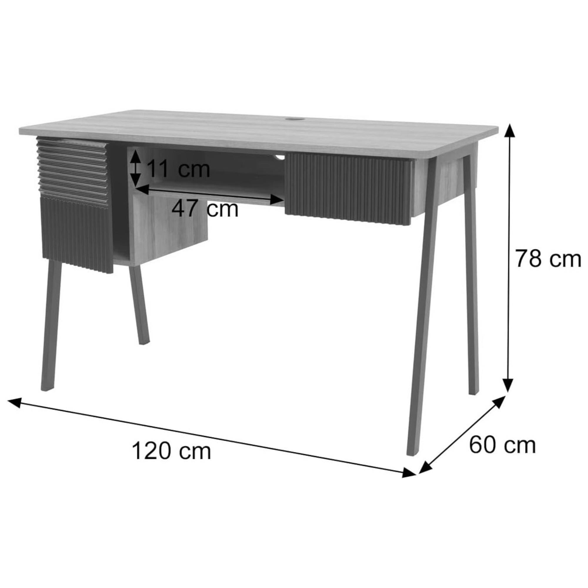 El escritorio cuenta con un pequeño cajón en la parte derecha con medidas de 25x32x8 cm (ancho, alto y profundidad), ideal para guardar los utensilios o heramientas de trabajo que necesites tener a mano. También dispone de un compartimento cerrado en la parque izquierda, con medidas de 37x38x31 cm, más amplio, perfecto para guardar carpetas, archivadores, etc. Como espacio para almacenaje adicional cuenta en la parte central con un compartimento abierto de amplias dimensiones, 47x38x 11 cm, muy útil para guardar el teclado o documentos a los que necesites acceder fácilmente. Además, los cajones cerrados cuentan con una cubierta con un precioso diseño en relieve y de color negro, que aportan un toque estético muy especial.