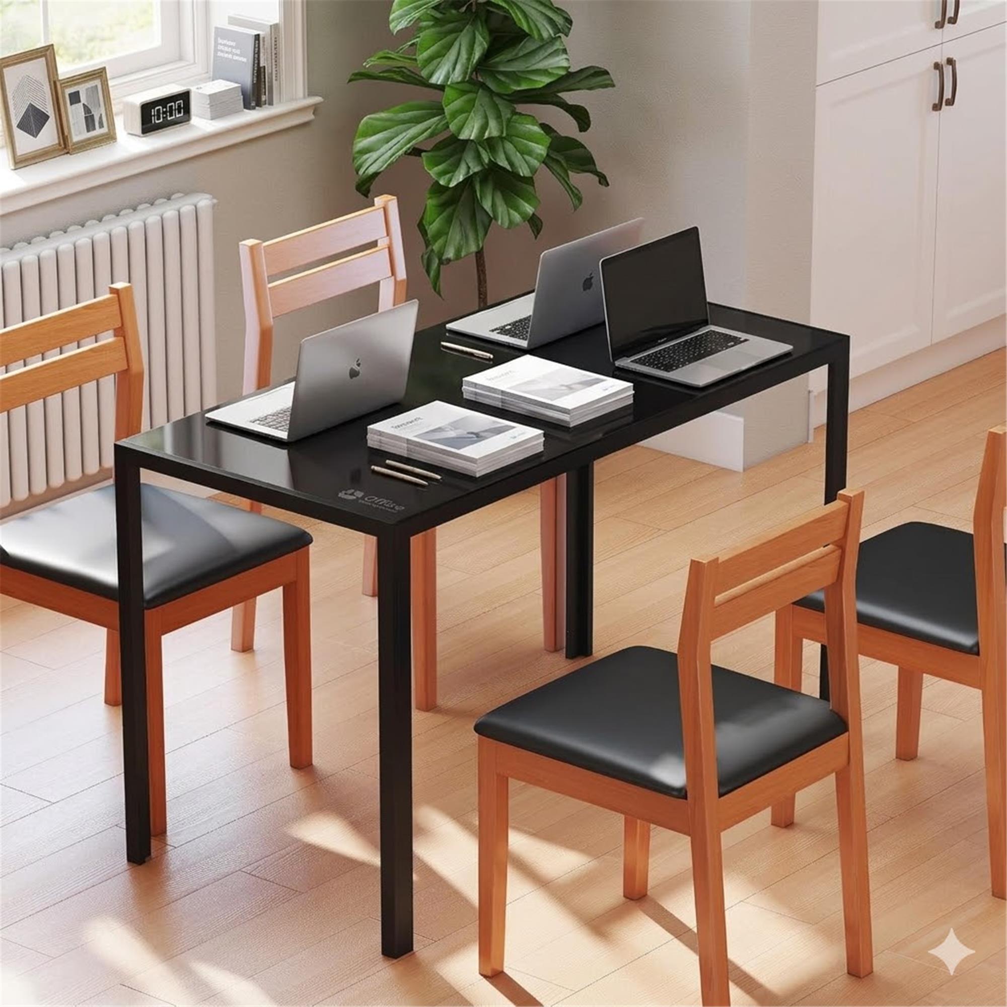 Mesa de Oficina MAPUTO, 120x60x75 cm, Estructura Metálica y Vidrio templado, color Negro