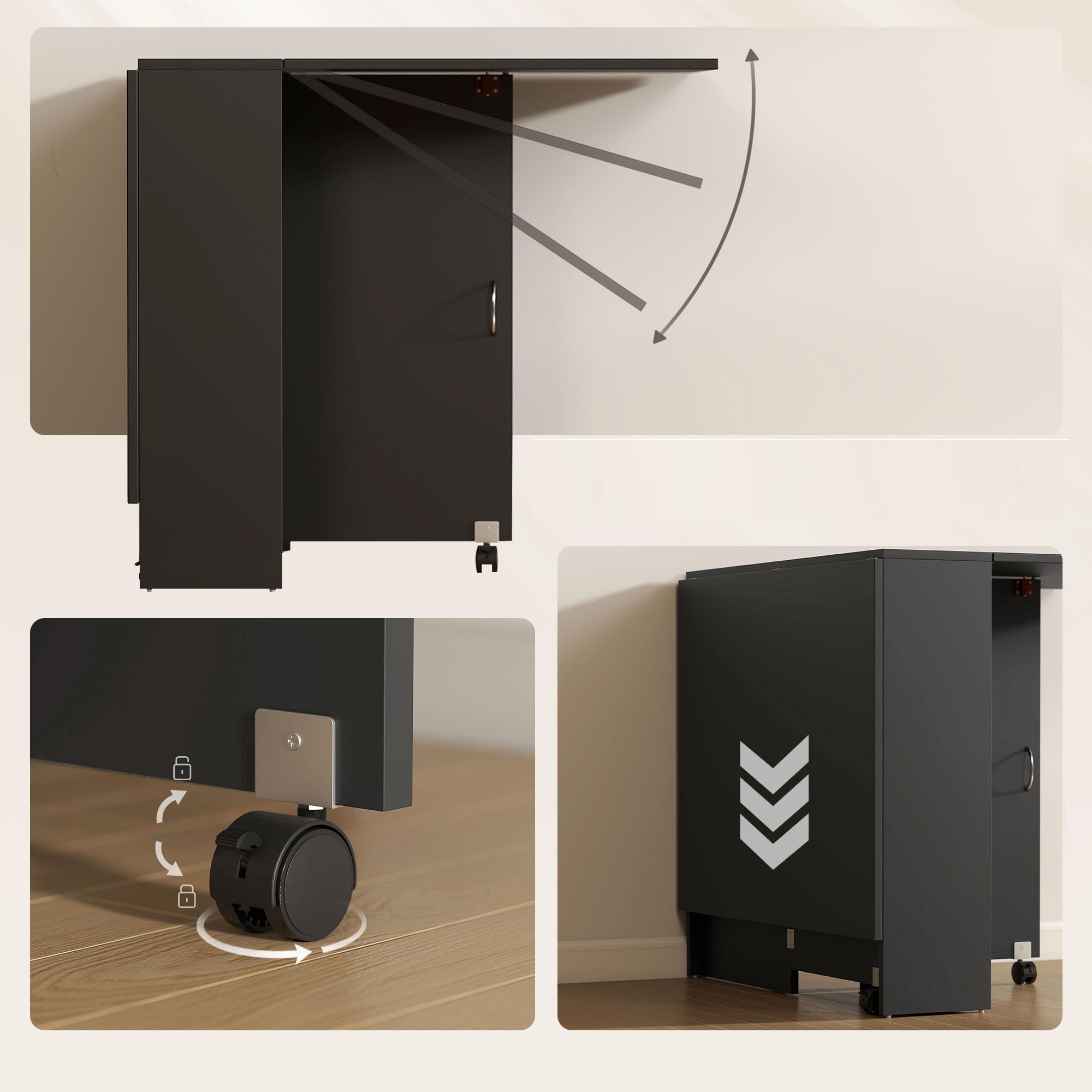 Cuenta con un práctico sistema de doble ala abatible, que ofrece una flexibilidad total según el número de personas o la tarea a realizar. Gracias a sus dos alas laterales independientes, la mesa puede pasar de ser una estrecha consola de tan solo 23 cm de fondo a una superficie generosa de 140 cm con capacidad para hasta 6 personas. Esta versatilidad permite utilizarla en tres posiciones: totalmente cerrada como mueble auxiliar, con un ala abierta para un uso individual o compartido, o completamente extendida para reuniones de equipo.