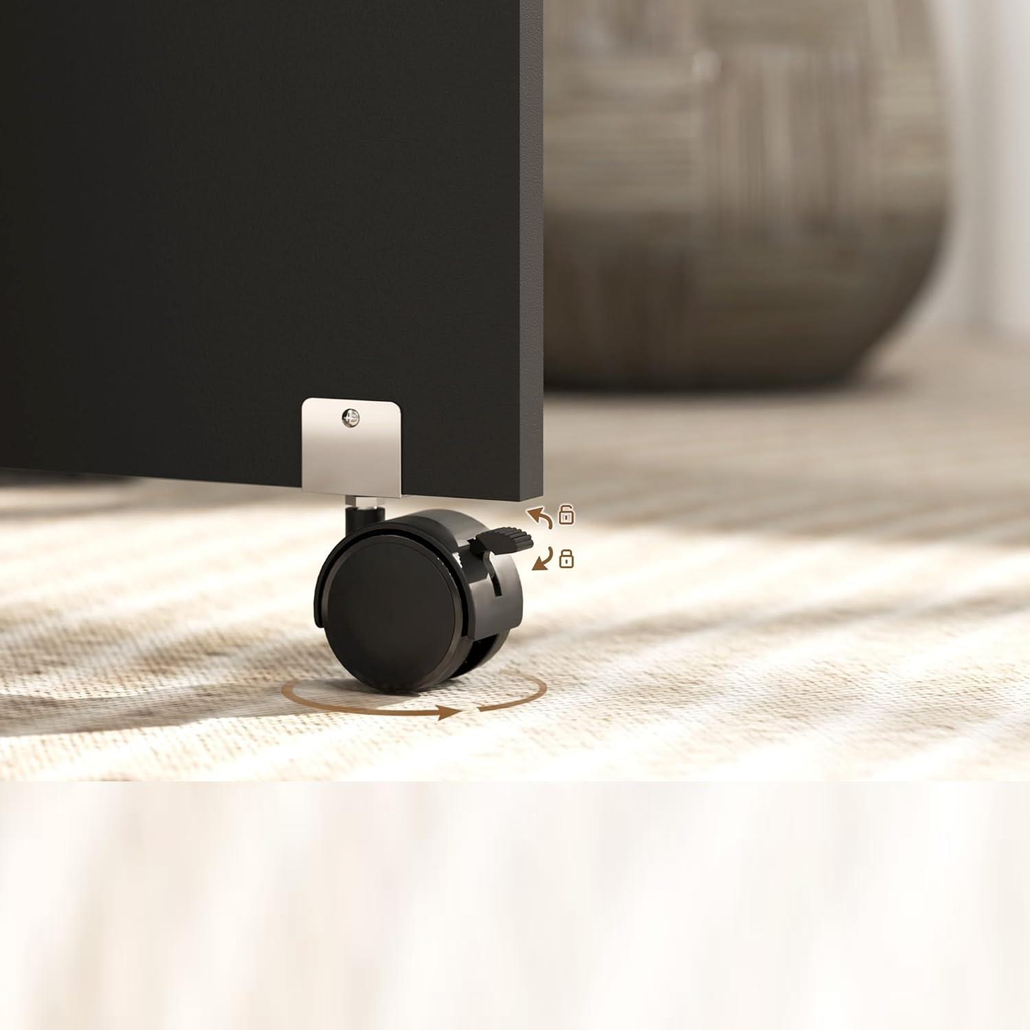 Más allá de su capacidad de plegado, este modelo destaca por su funcionalidad añadida, ya que incorpora dos estantes centrales que proporcionan un valioso espacio de almacenaje. Además, para facilitar su manejo y garantizar la estabilidad, la mesa cuenta con dos ruedas con freno que permiten desplazarla sin esfuerzo y fijarla de forma segura una vez colocada en su posición. La estructura, fabricada en madera de alta calidad, garantiza una superficie robusta y resistente al uso diario, manteniendo un perfil ligero y moderno.