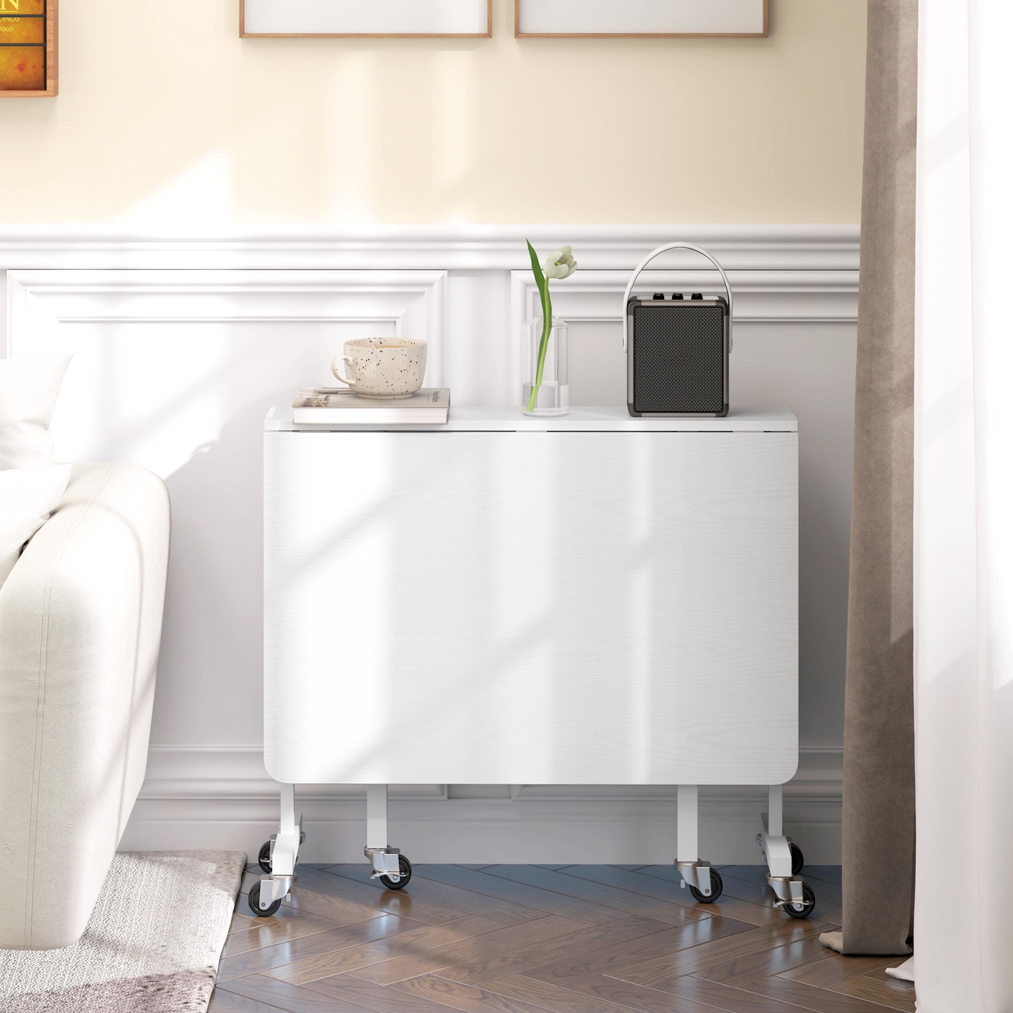 Mesa de Reuniones NICOSIA, Metal y Madera, Plegable con Ruedas, 2 Alas Abatibles, 120x80x73 cm, color Blanco