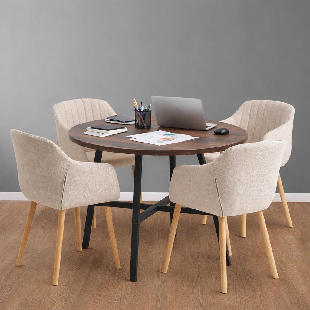 Mesa de Reuniones ROGA, Dimensiones Ø80x76 cm, Estructura Metálica, Superficie de Madera color Nogal Rústico