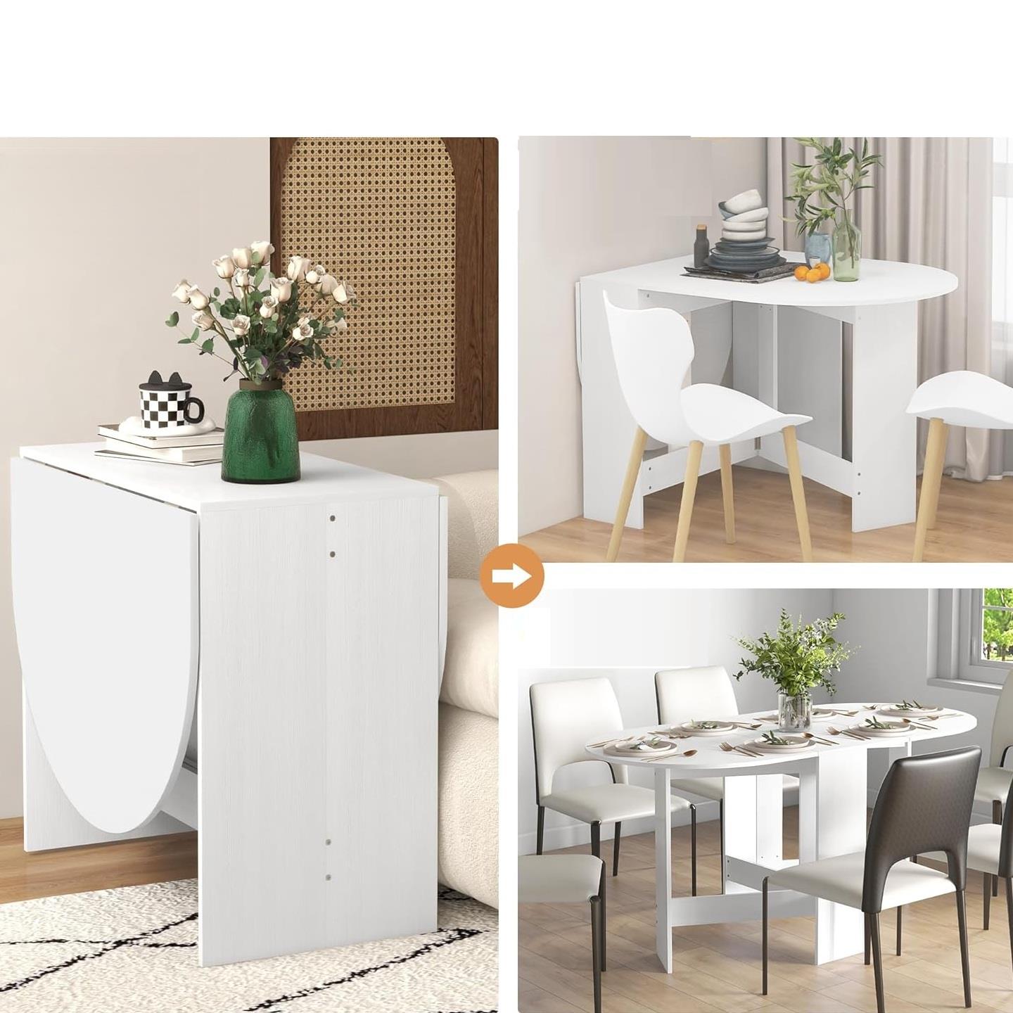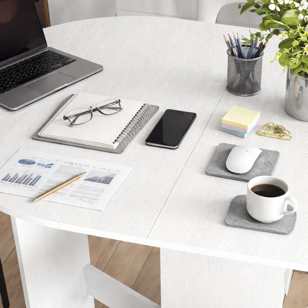 Mesa de Reuniones VADUZ, Diseño Ovalado con Alas Abatibles, hasta 6 Personas, color Blanco