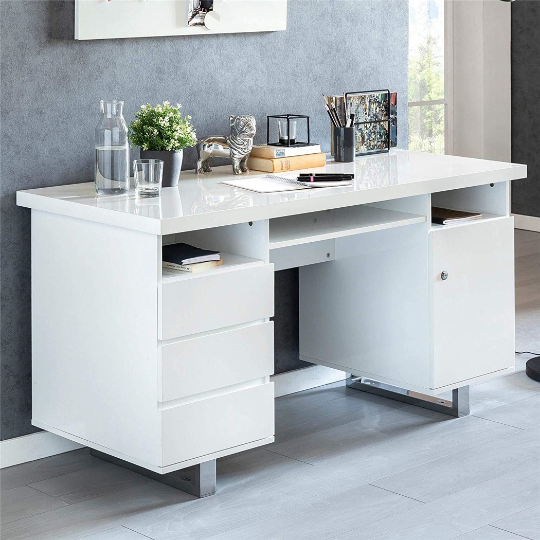Este escritorio sobresale por su atractivo estilo moderno. Presenta un diseño con líneas rectas, sencillo y sin ornamentos. Es sobrio y elegante, quedará bien en cualquier estancia donde decidas colocarlo.