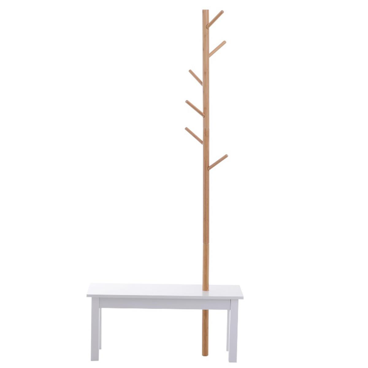 Perchero de Pie TAMY, en Madera de Bambú y Banco color Blanco