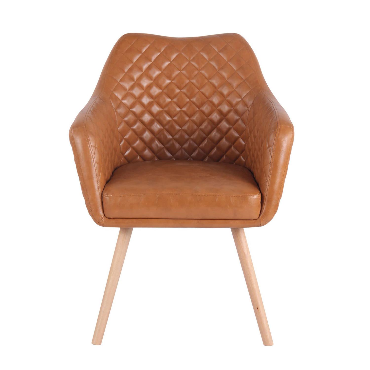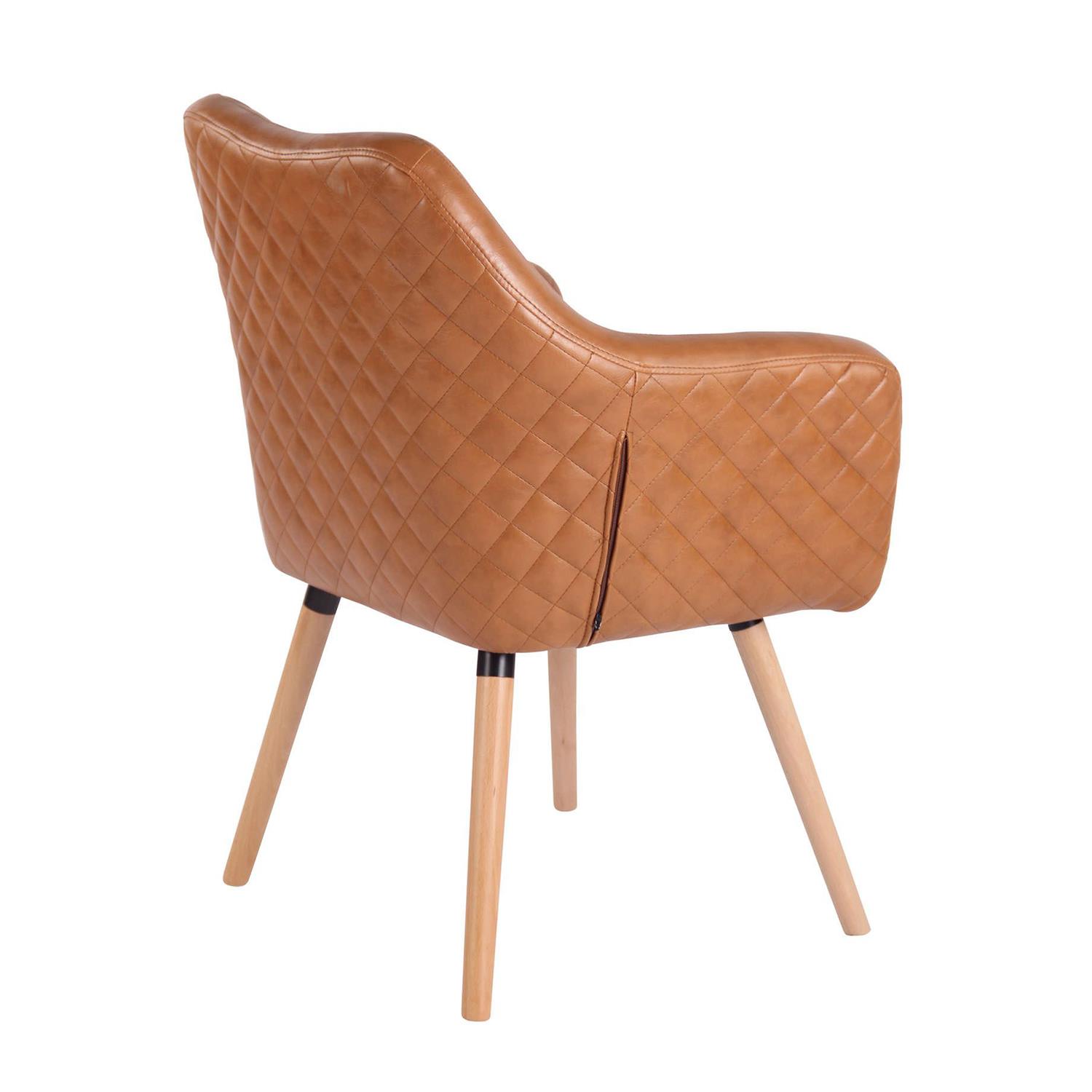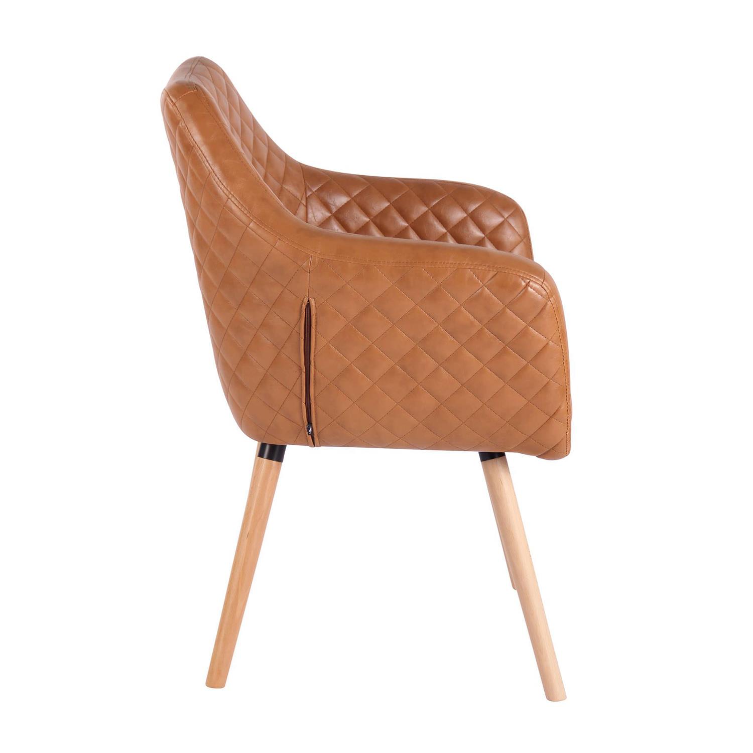 Silla de Confidente BASILEA, Exclusivo Diseño con Costuras, Patas Haya y Piel Marrón Claro