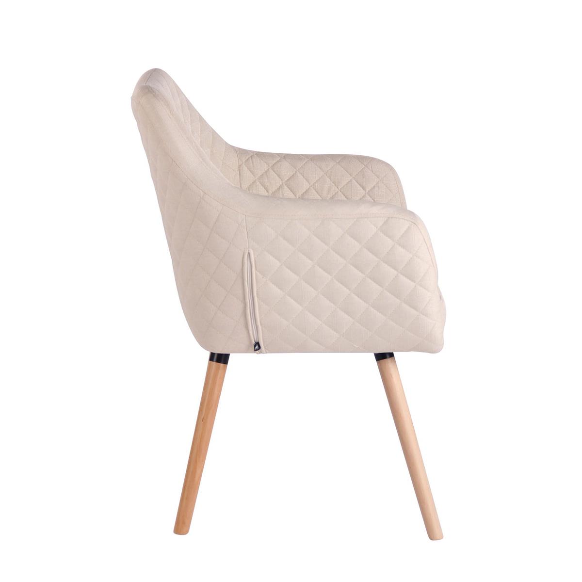 Silla de Confidente BASILEA TELA, Exclusivo Diseño con Costuras, Patas Haya, Color Crema