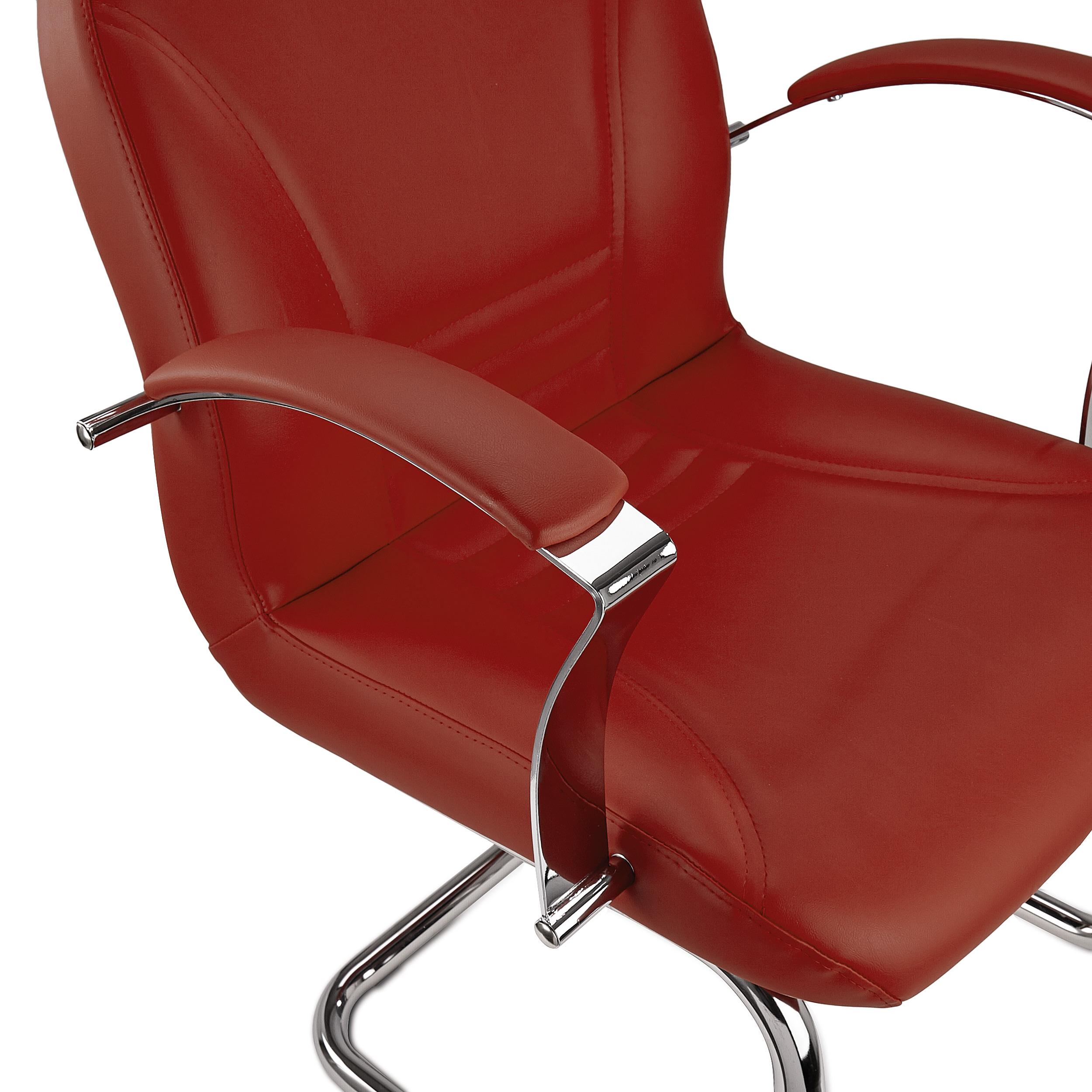 Silla de Confidente CANCUN, Elegante Diseño, Estructura Metálica, en Piel Burdeos