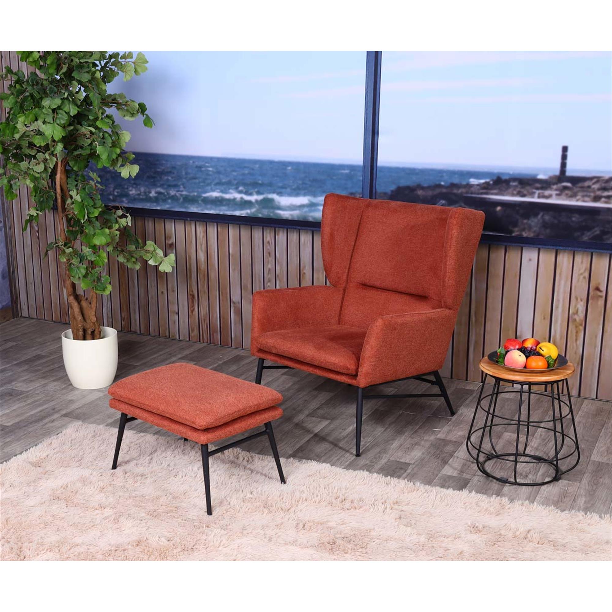 El tapizado del sillón está fabricado con un tela suave de alta calidad, fácil de mantener y limpiar. Esta tela está compuesta el 95% de polisester y el 5% de nailon. La eestrcutura es de contrachapado de álamo, mientars que las patas están fabricadas en acero y estilizan todo el sillón, confiriéndole un aspecto exclusivo. Además, están equipadas con protectores regulables en altura para el suelo, con el fin de evitar arañazos antiestéticos y poder colocar el sillón incluso en superficies irregulares. Este modelo es resistente hasta 120 kg.