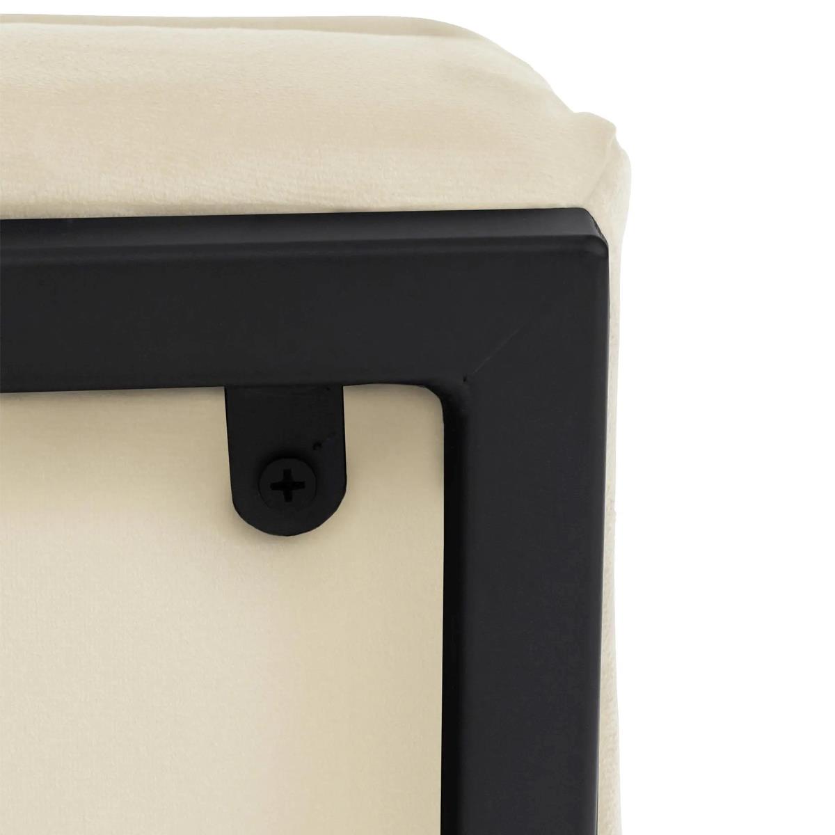 Está tapizada en terciopelo de gran calidad, muy suave y agradable al tacto. Además, es un material muy cómodo y duradero, que además aporta un toque de lujo y elegancia a cualquier estancia. Destaca el diseño del respaldo, con detalles estéticos en forma de botones integrados en el tapizado, que le aportan un aspecto muy sofisicado y refinado.