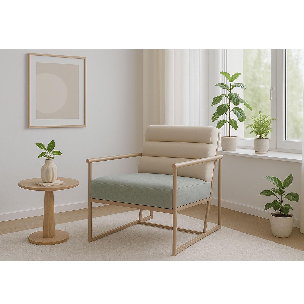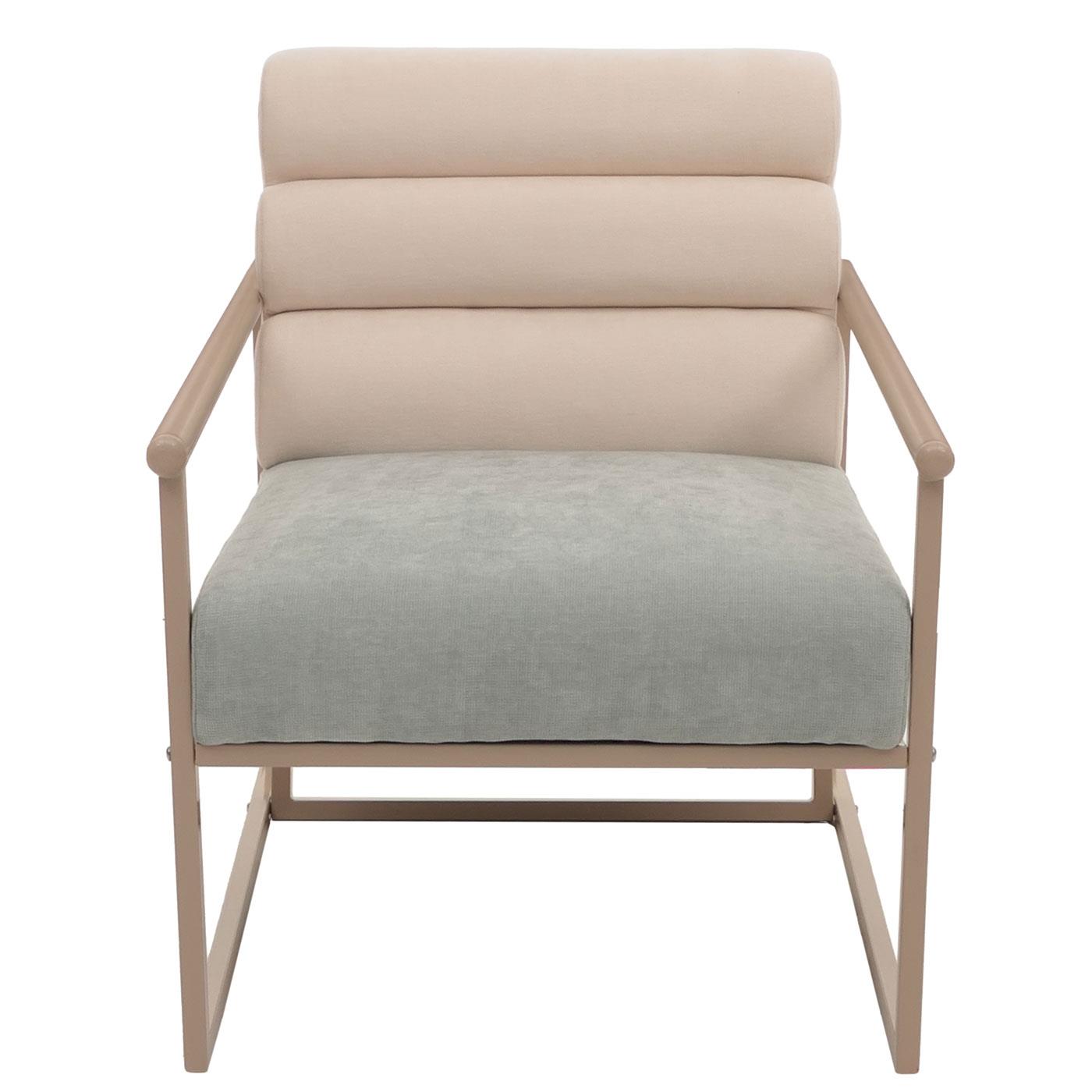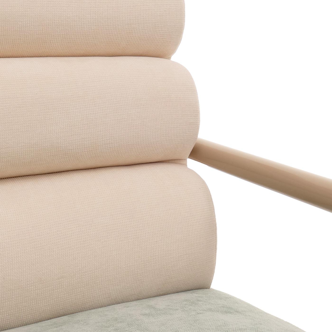 Silla de Confidente de Diseño MILLS, Estructura Metálica, en Tela color Crema y Azul Verdoso