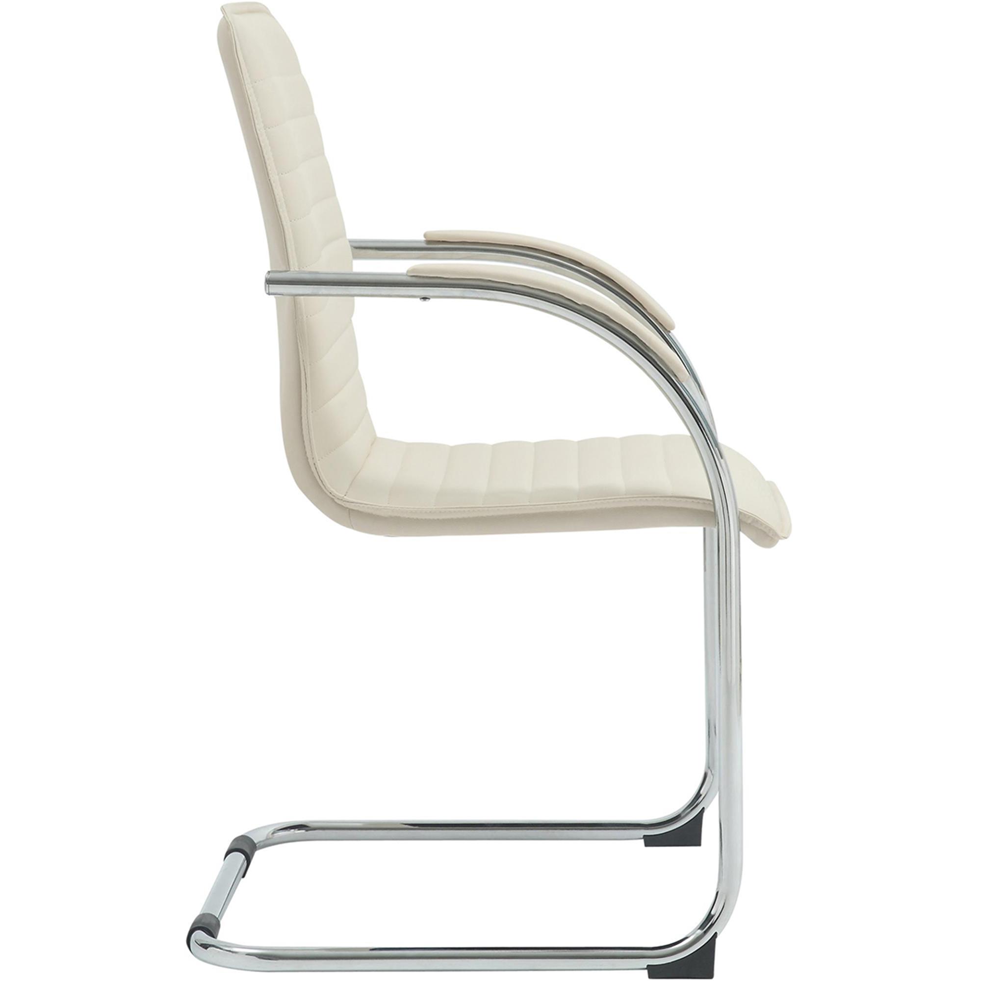 Silla de Confidente GREGORY, Estructura Metálica Cromada, en Piel color Crema