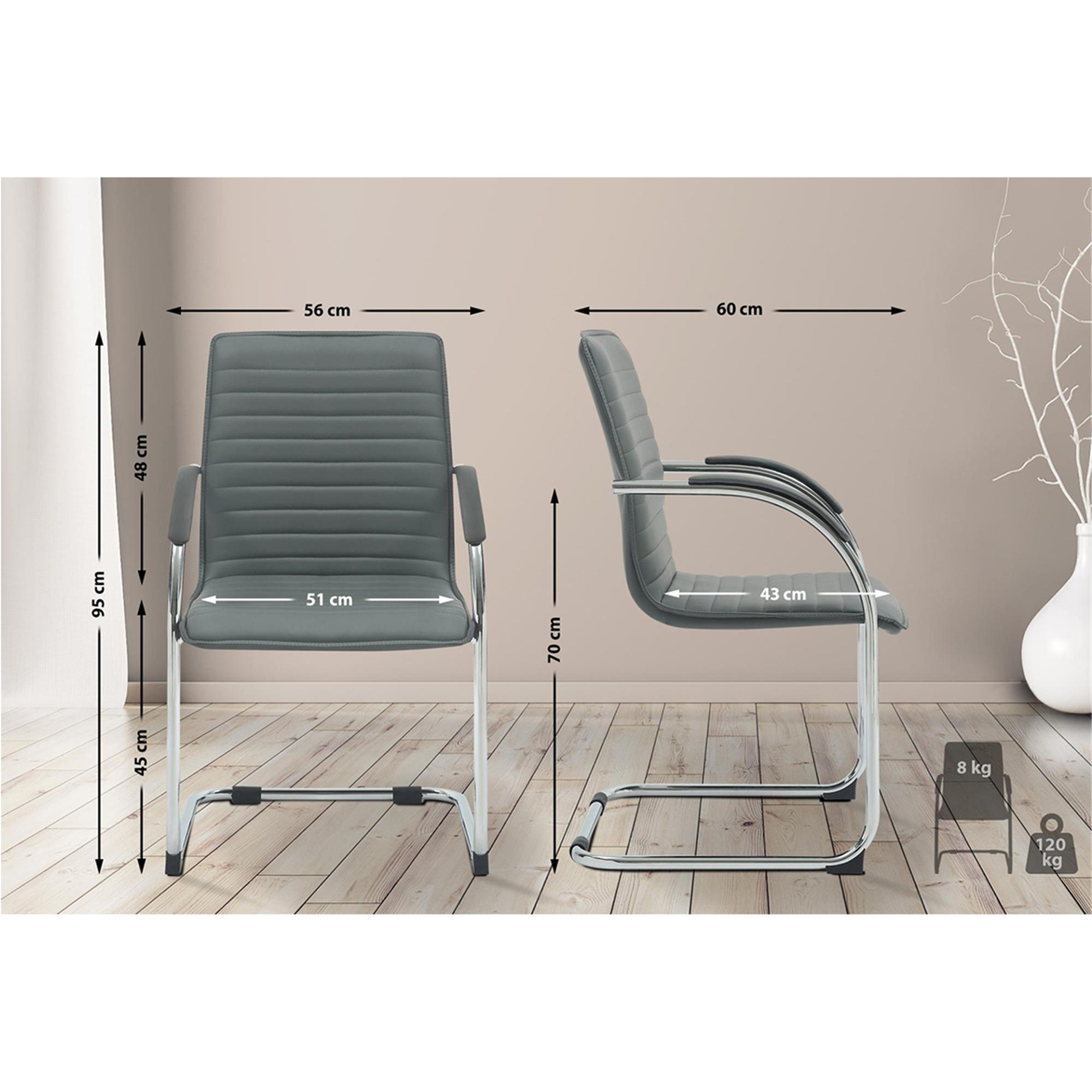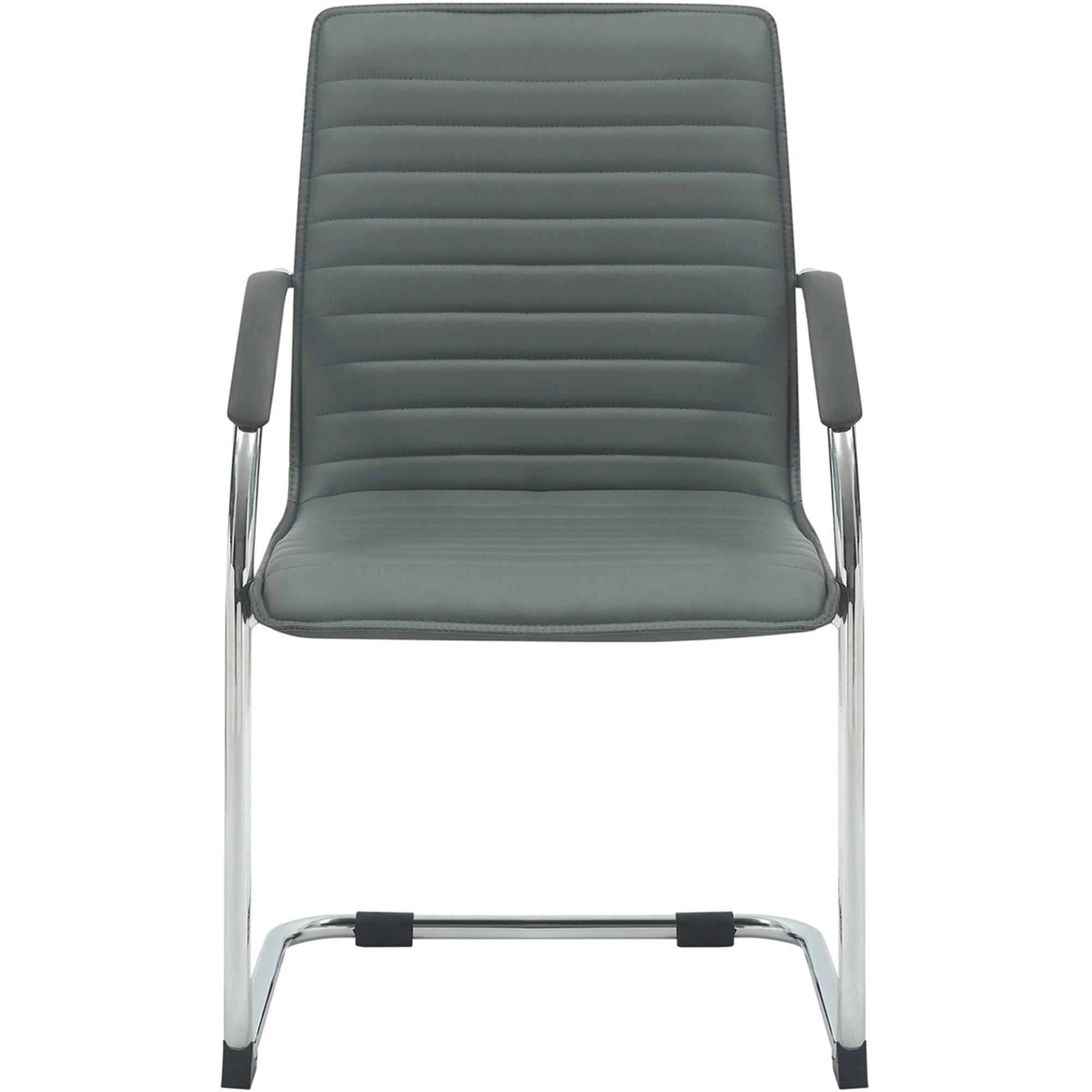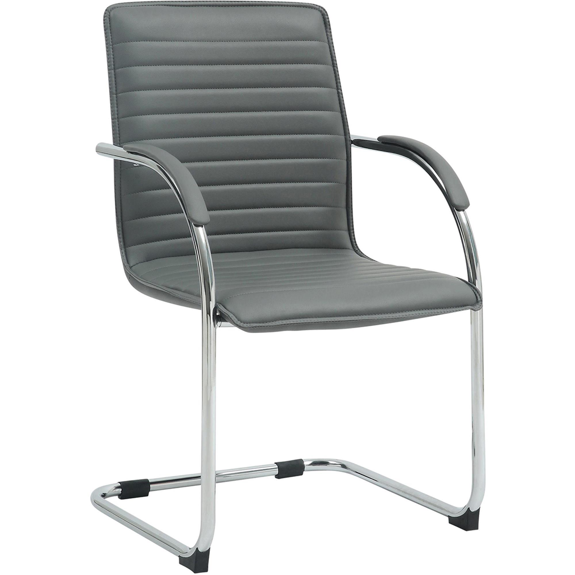 Silla de Confidente GREGORY, Estructura Metálica Cromada, en Piel color Gris