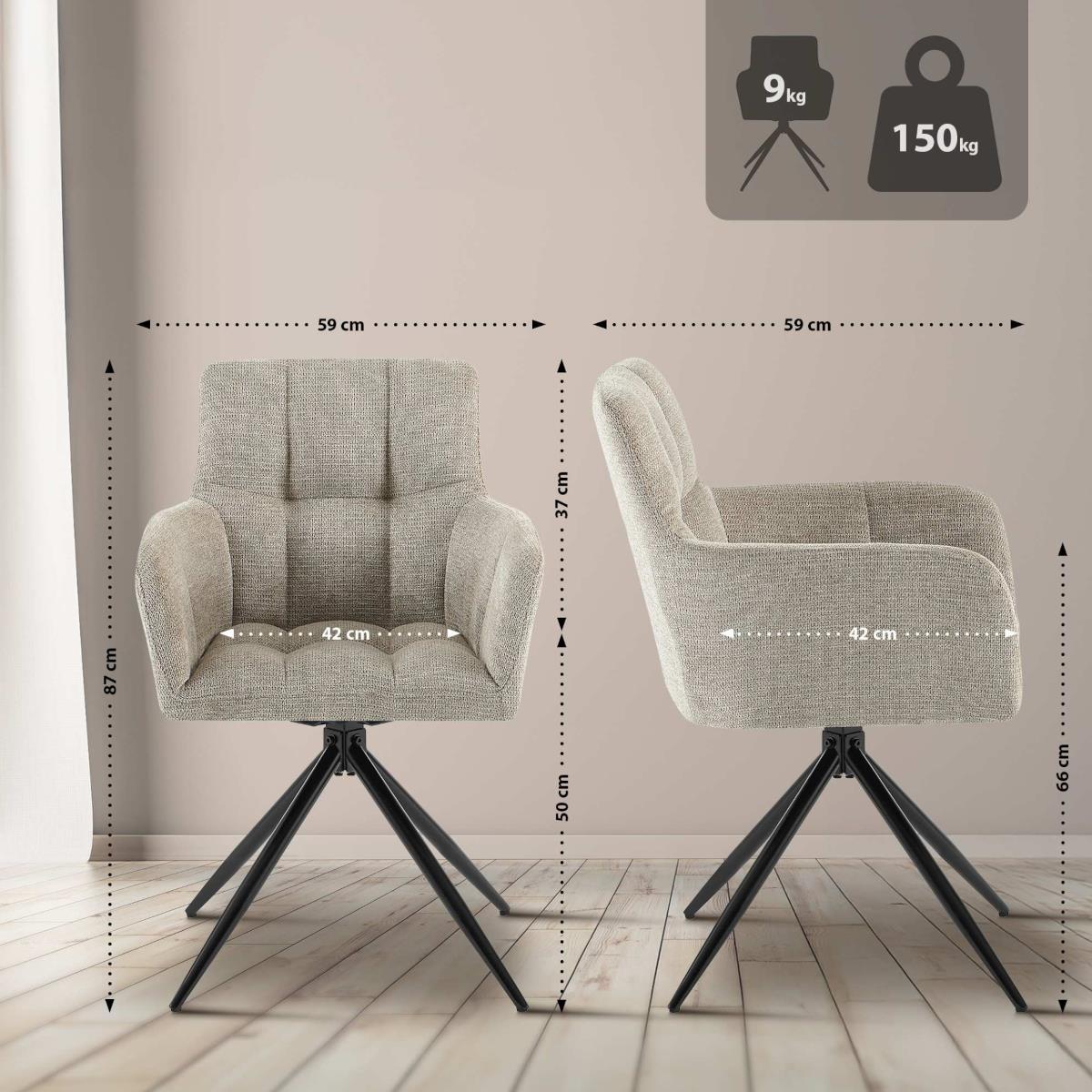 Silla de Confidente KEMP, Diseño Moderno, Giratoria, en Tela color Gris Pardo