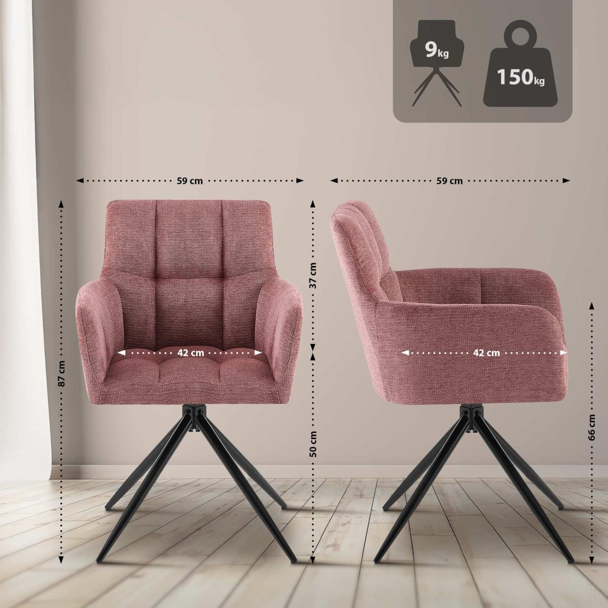 Silla de Confidente KEMP, Diseño Moderno, Giratoria, en Tela color Rosa