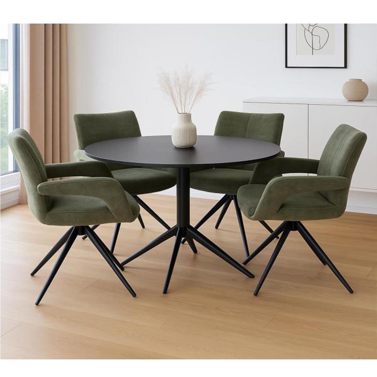Estamos ante una silla muy práctica y polivalente. Su asiento giratorio de 180° permite una total libertad de movimiento y un manejo especialmente cómodo, ya que vuelve de forma suave a su posición original al levantarse. Esta característica la convierte en una opción ideal para el uso diario, tanto en el comedor como en la sala de reuniones o de espera.