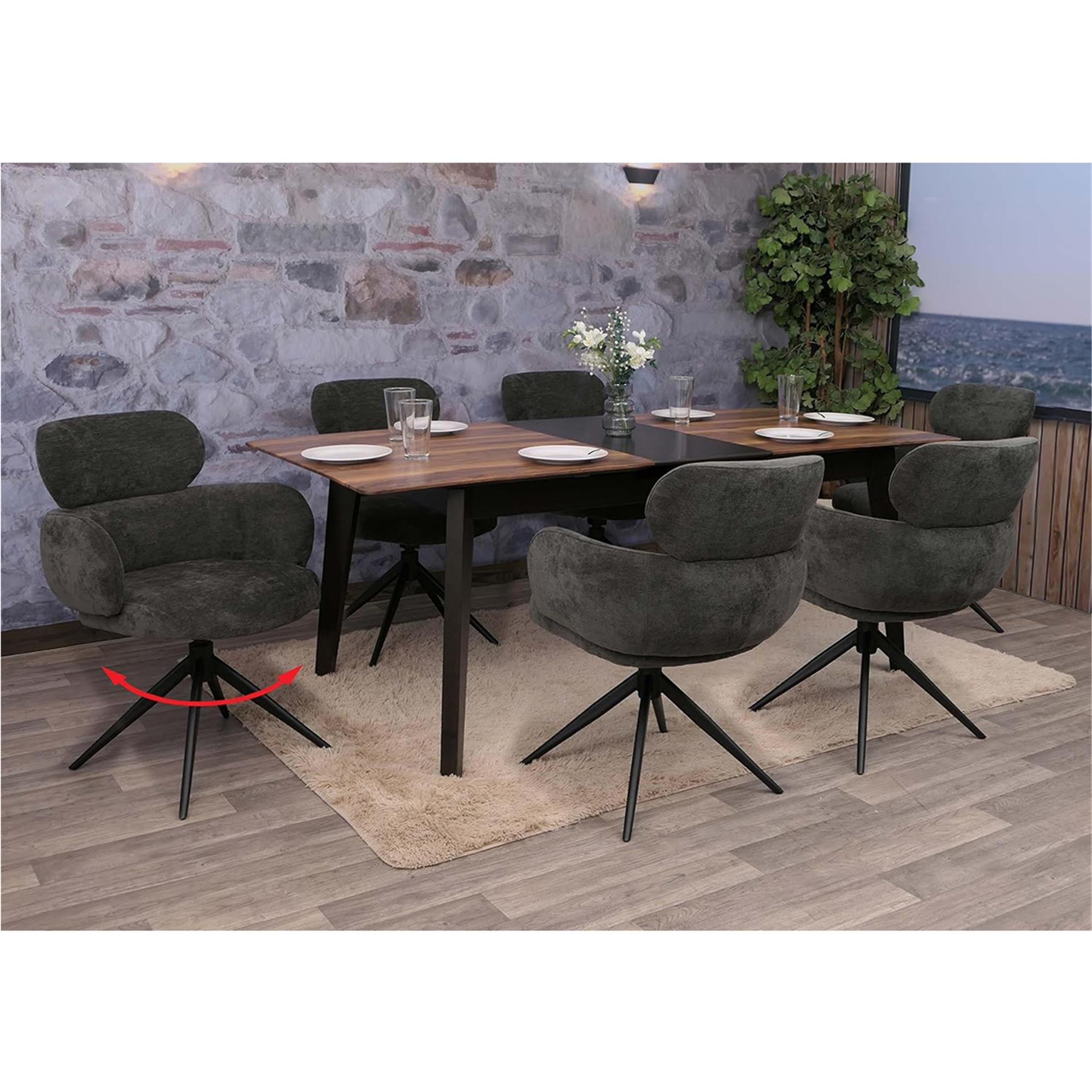 Se trata de una silla fabricada con materiales de calidad. Los reposabrazos cómodamente acolchados y los bordes delicadamente redondeados ofrecen un factor adicional de comodidad, creando un diseño armonioso que se integra con estilo en cualquier ambiente. Este práctico modelo es, además, giratorio 360º por lo que es una opción muy versátil y se puede usar incluso como sillas de escritorio.