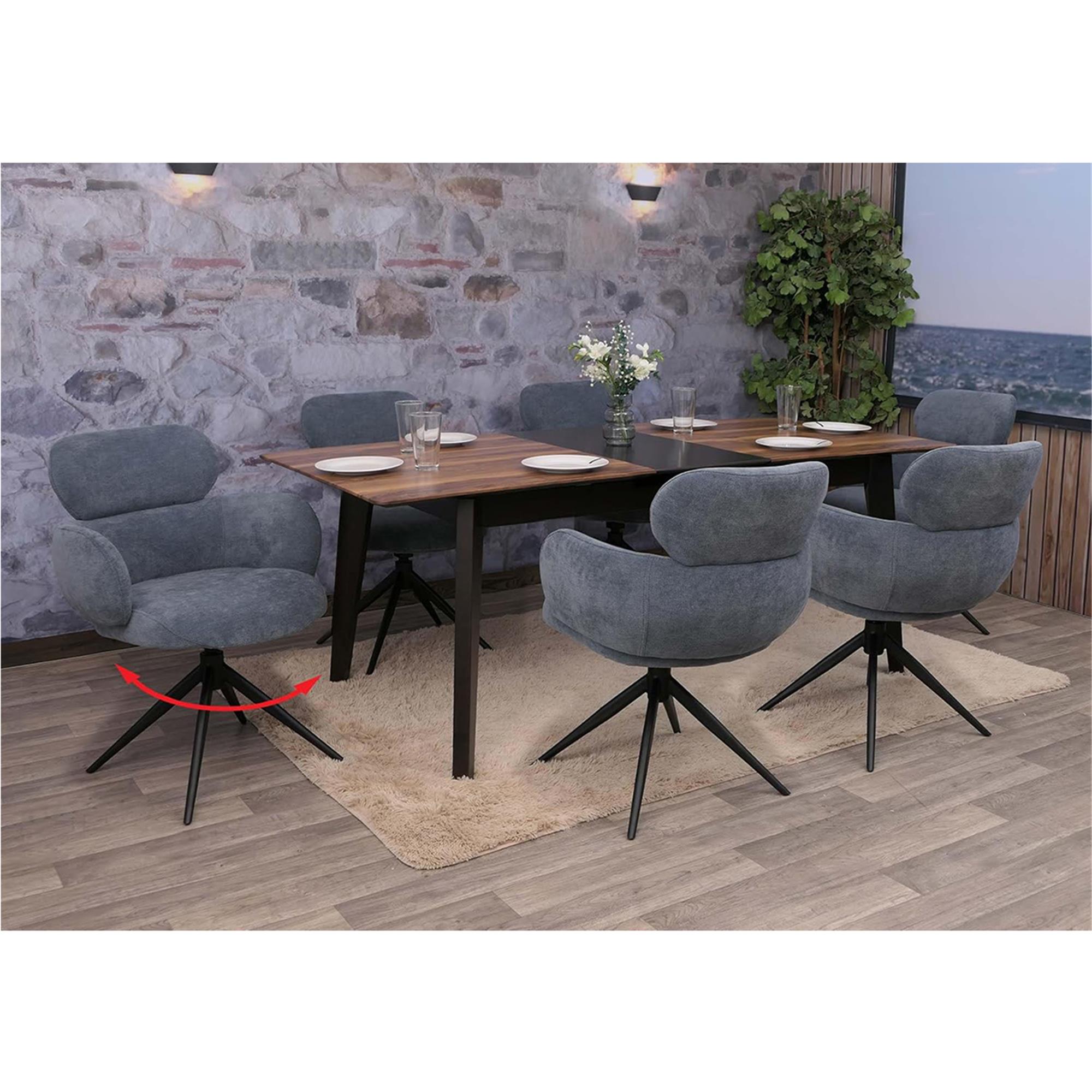 Se trata de una silla fabricada con materiales de calidad. Los reposabrazos cómodamente acolchados y los bordes delicadamente redondeados ofrecen un factor adicional de comodidad, creando un diseño armonioso que se integra con estilo en cualquier ambiente. Este práctico modelo es, además, giratorio 360º por lo que es una opción muy versátil y se puede usar incluso como sillas de escritorio.