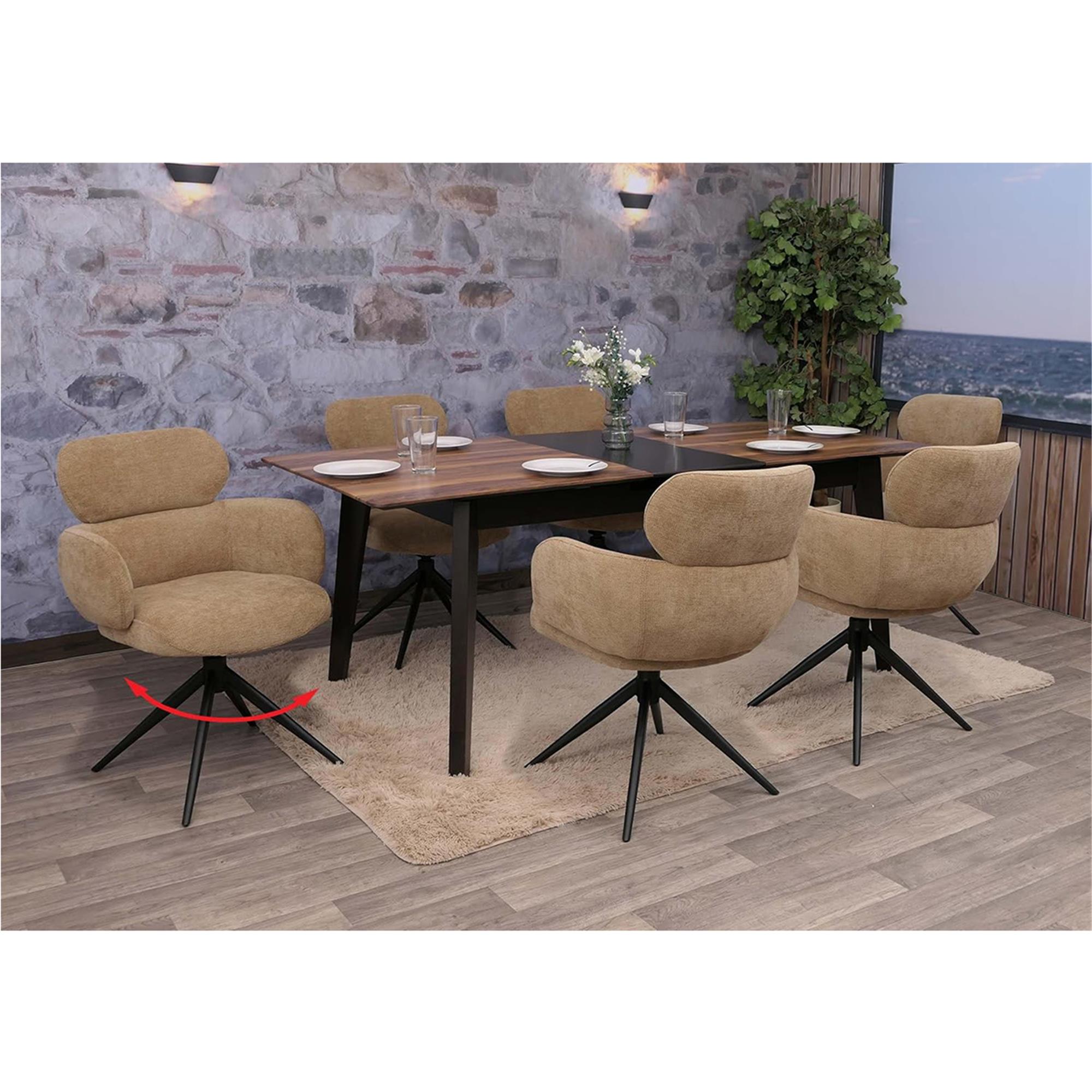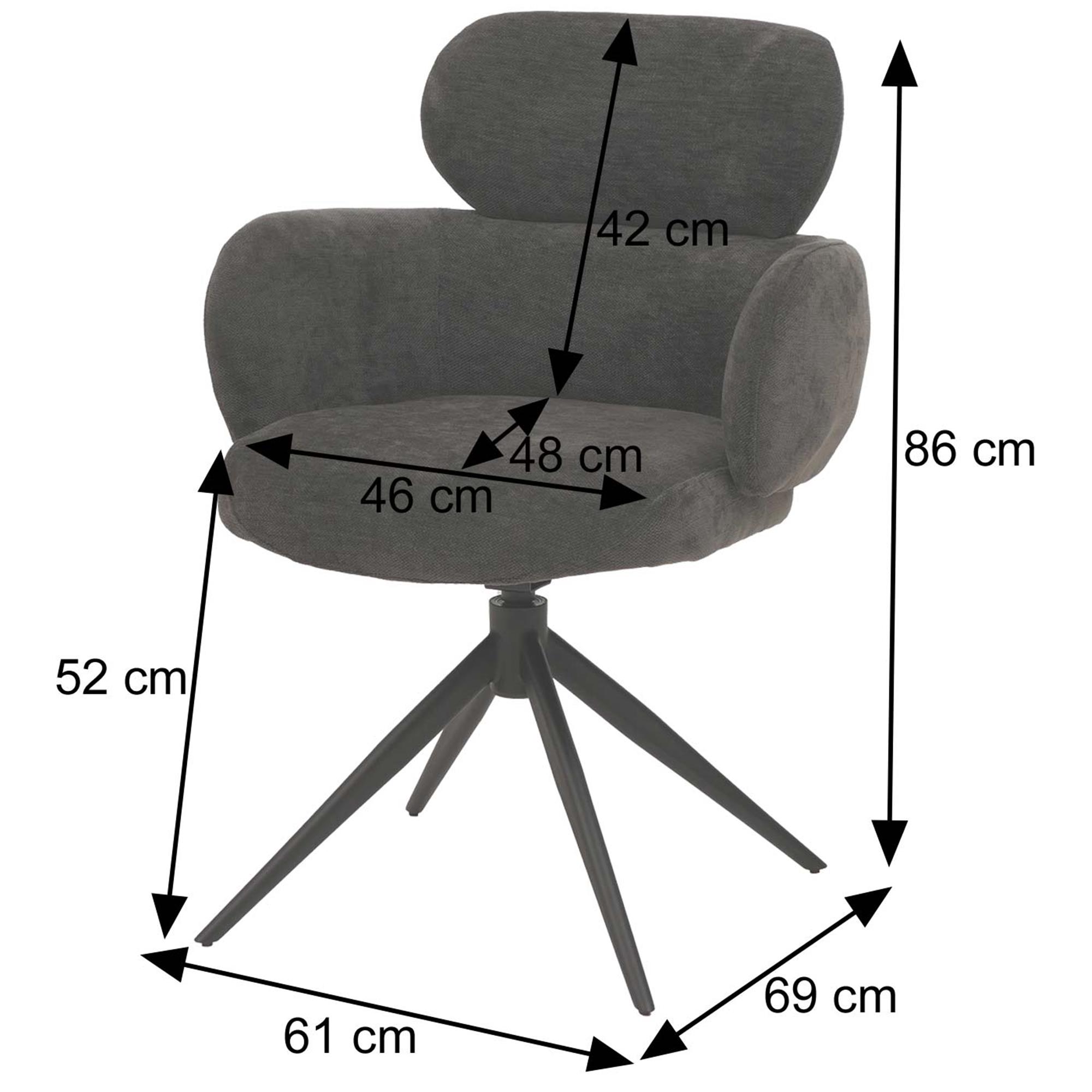Se trata de una silla fabricada con materiales de calidad. Los reposabrazos cómodamente acolchados y los bordes delicadamente redondeados ofrecen un factor adicional de comodidad, creando un diseño armonioso que se integra con estilo en cualquier ambiente. Este práctico modelo es, además, giratorio 360º por lo que es una opción muy versátil y se puede usar incluso como sillas de escritorio.