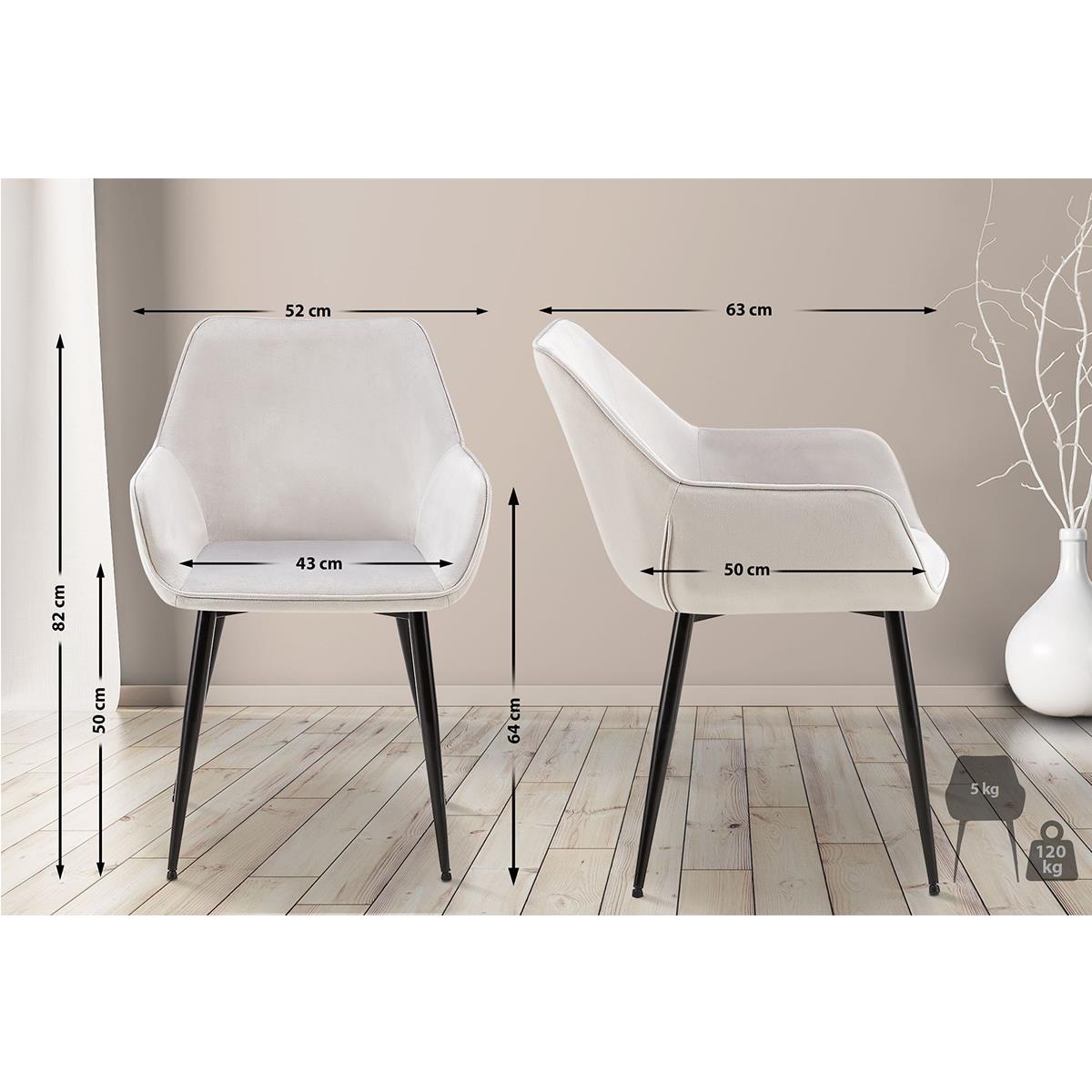 Silla de Confidente MAYA, Tapizado de Terciopelo, Patas Negras, en color Gris claro