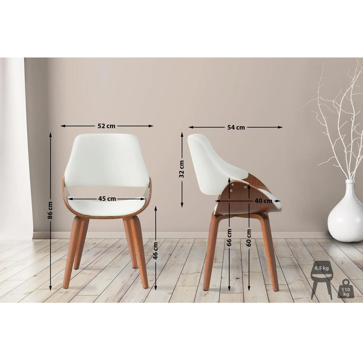 Silla de Confidente NESKA PIEL, Diseño Moderno, en Madera Nogal, color Blanco