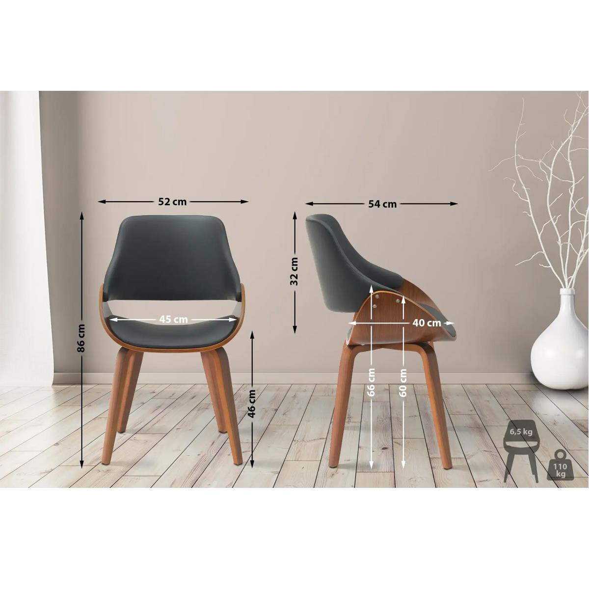 Silla de Confidente NESKA PIEL, Diseño Moderno, en Madera Nogal, color Negro